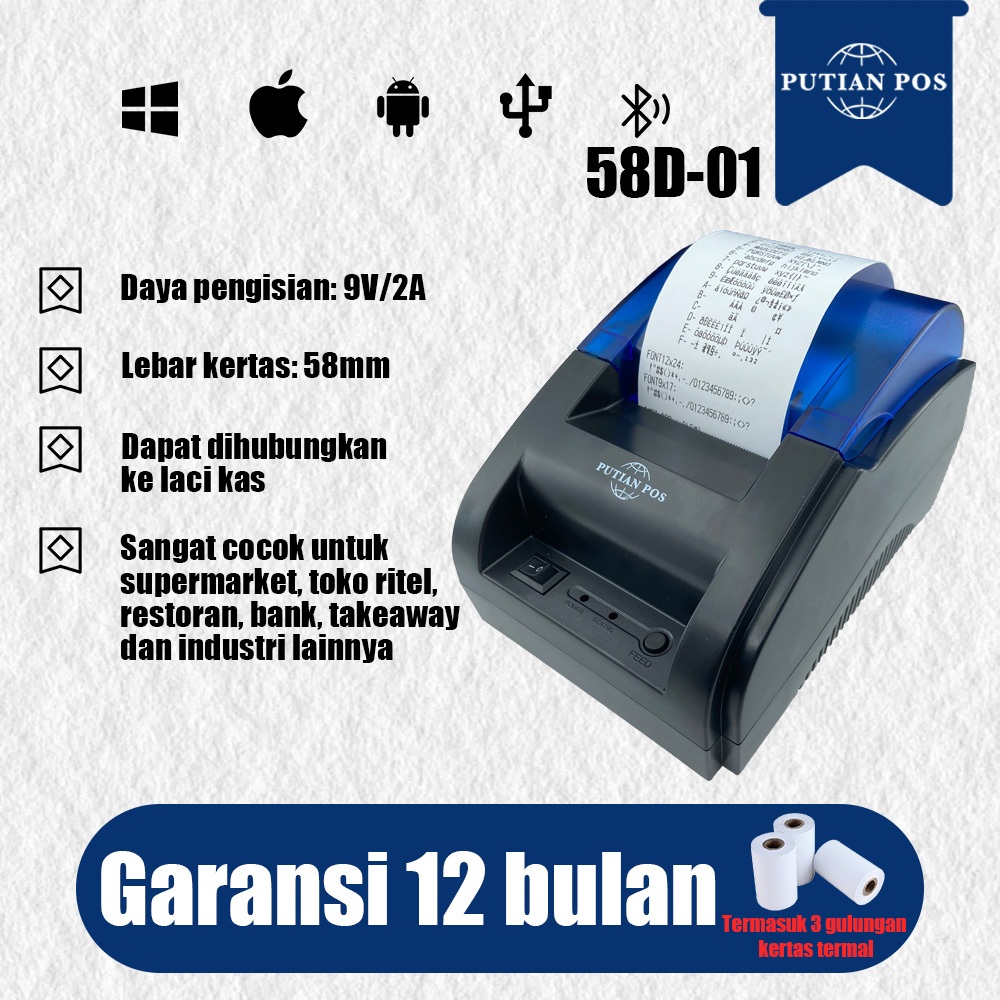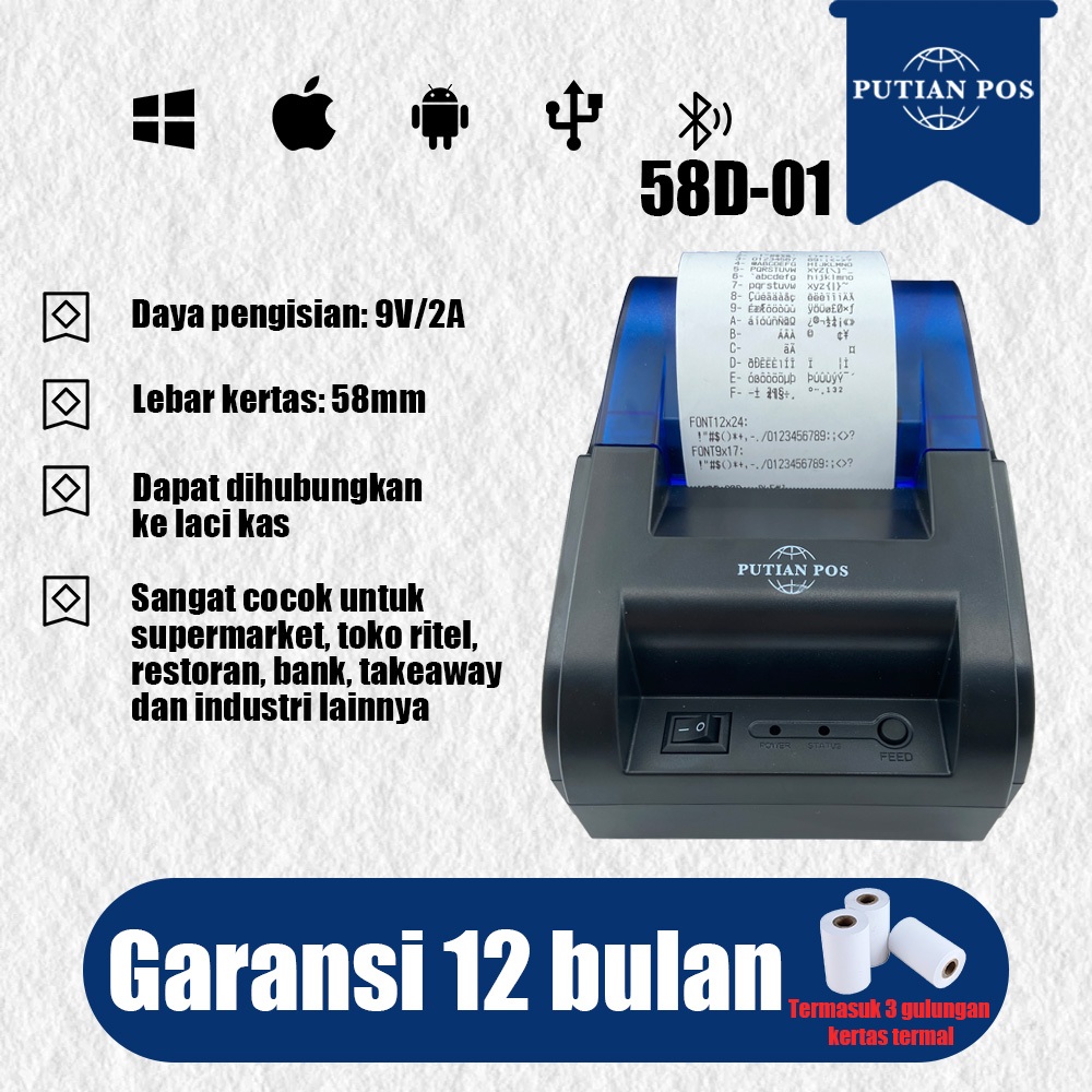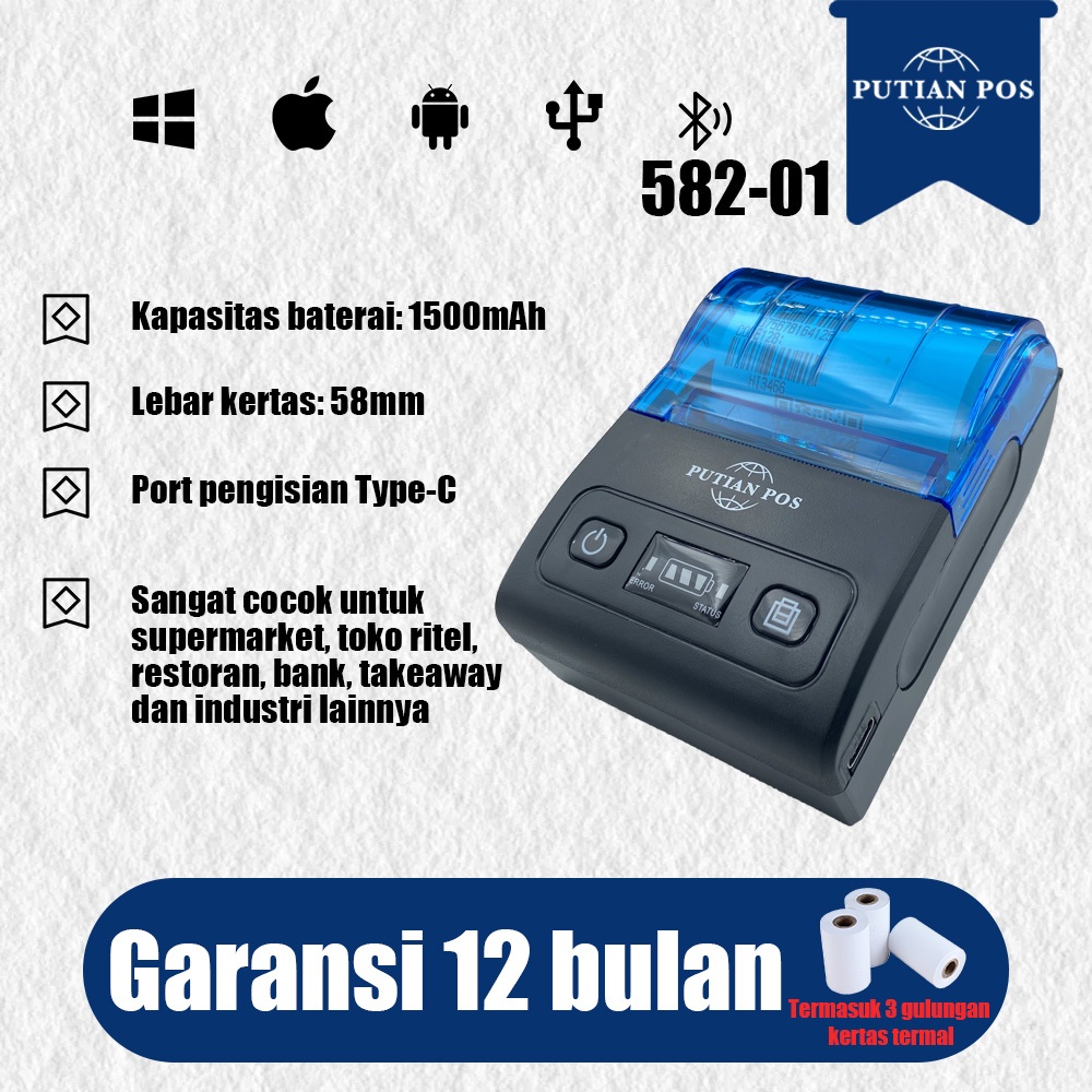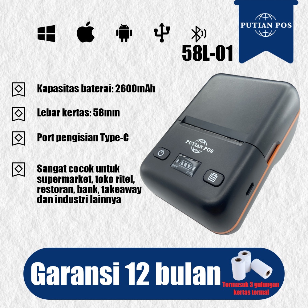 [Mall] PUTIAN POS PRINTER TERMAL BLUETOOTH 58MM, COCOK UNTUK MENCETAK LABEL KASIR/MENCETAK LABEL STIKER