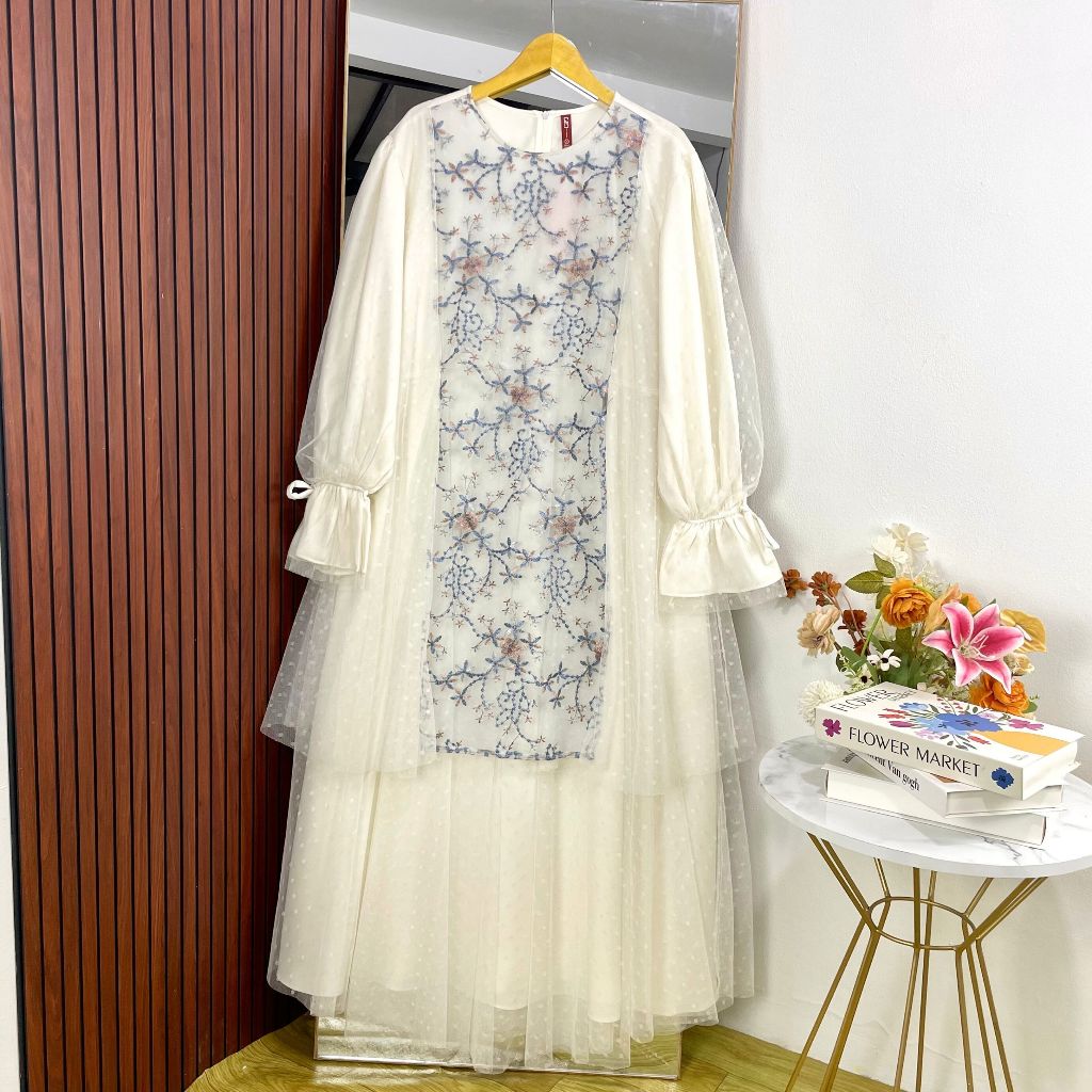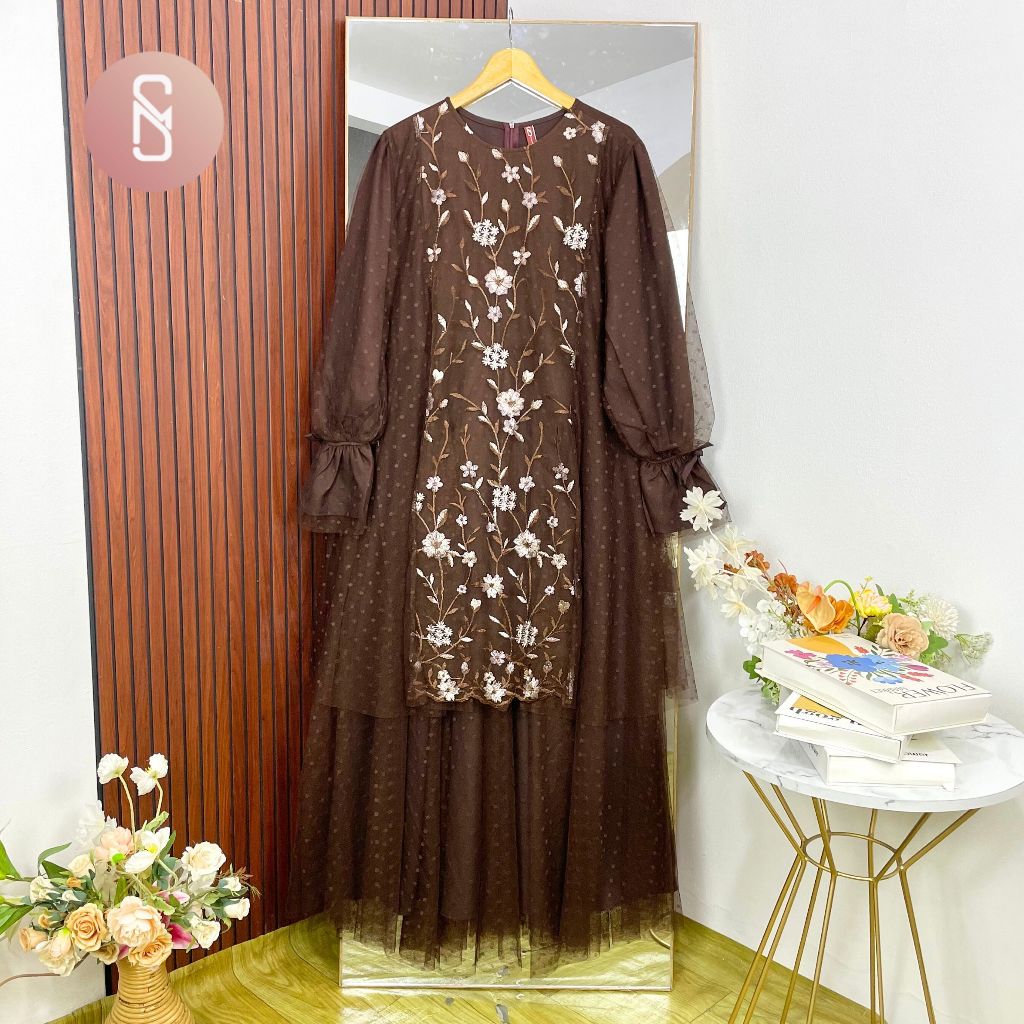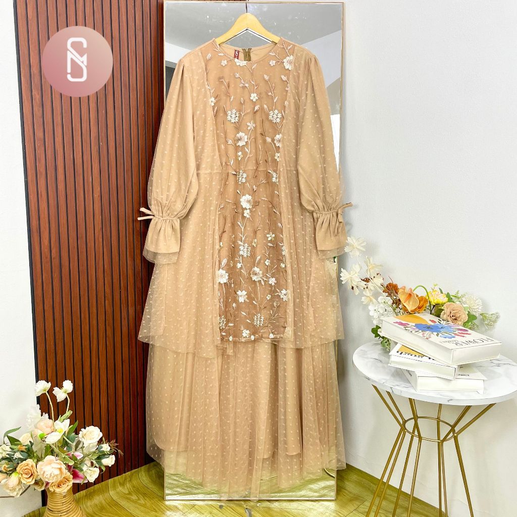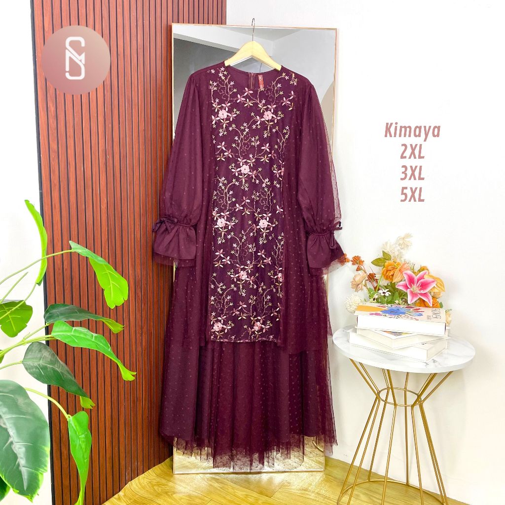 [Mall] KIMAYA MYSHAWL NAKIA DRESS PESTA GAMIS BRUKAT SYAR'I JUMBO BRUKAT LEBARAN CANTIK LD UP TO 120 130 140 ONITA