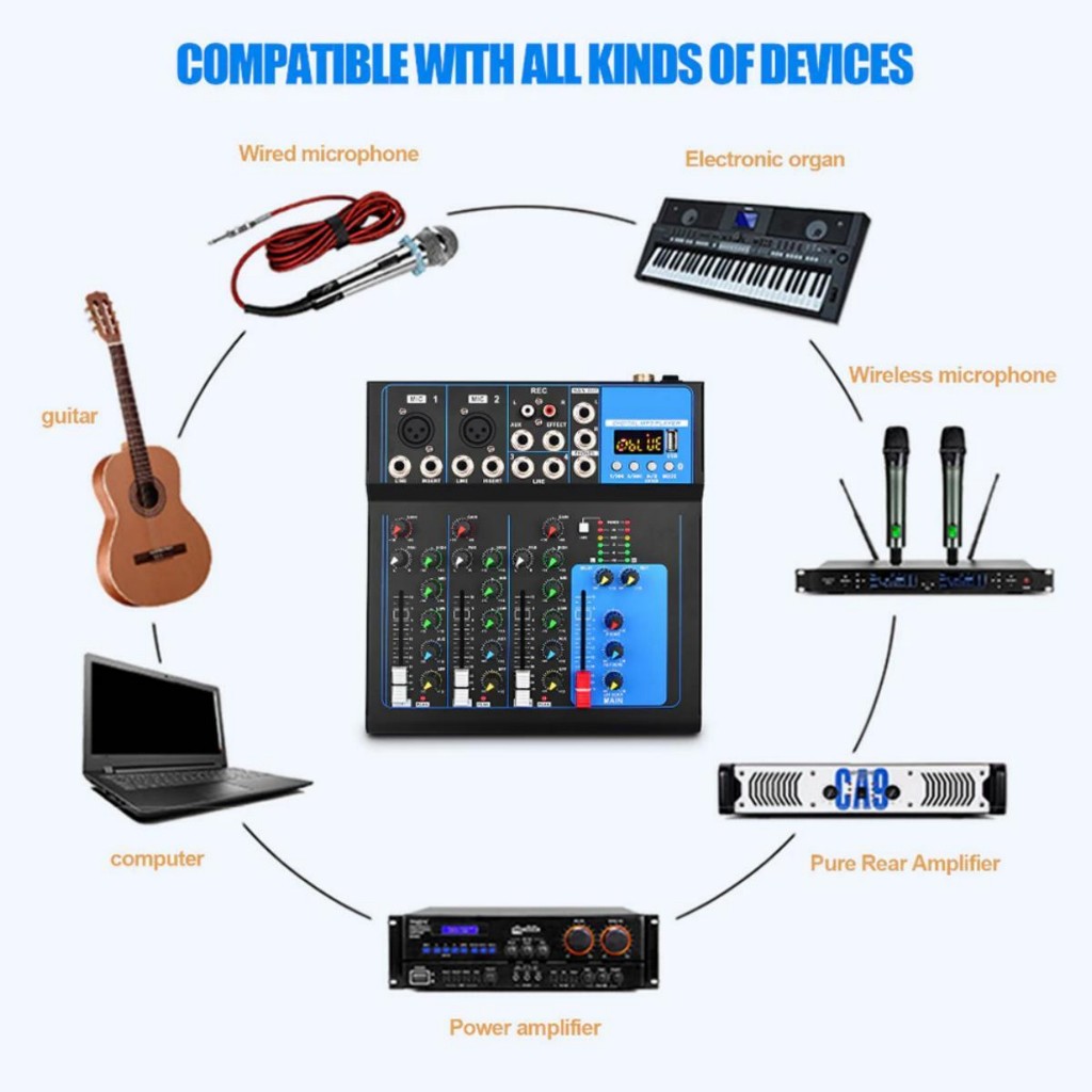 Professional Audio mixer DJ remix 4ch/7ch mendukung bluetooth /USB/PC/MP3 Portable Mixer Audio