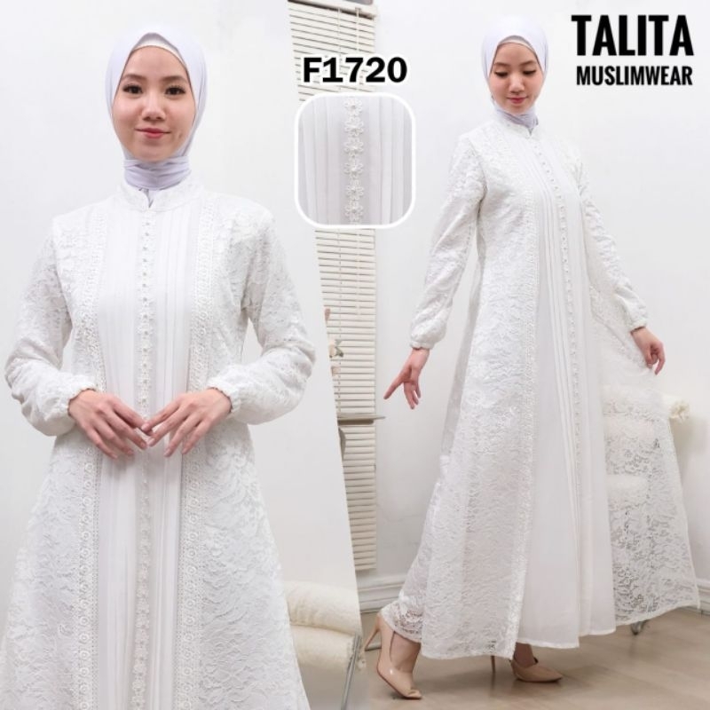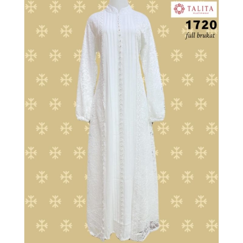 [Mall] GAMIS PUTIH FULL BRUKAT PREMIUM POLOS TENGAH/BUKA BAWAH