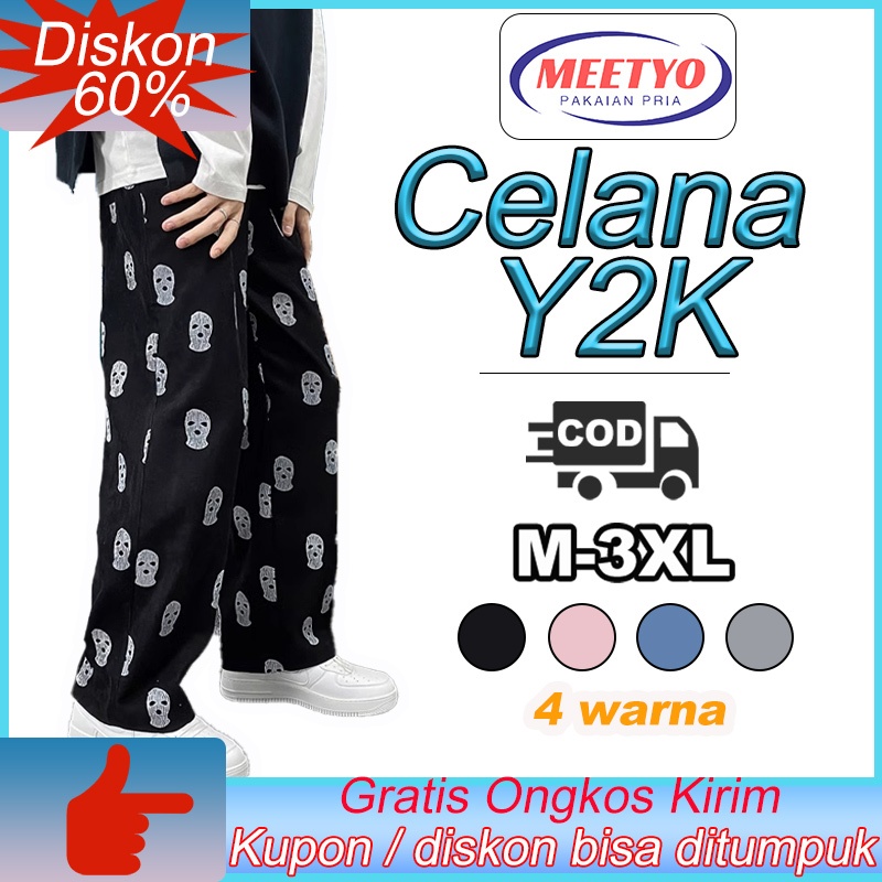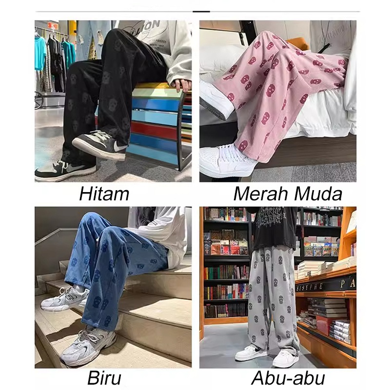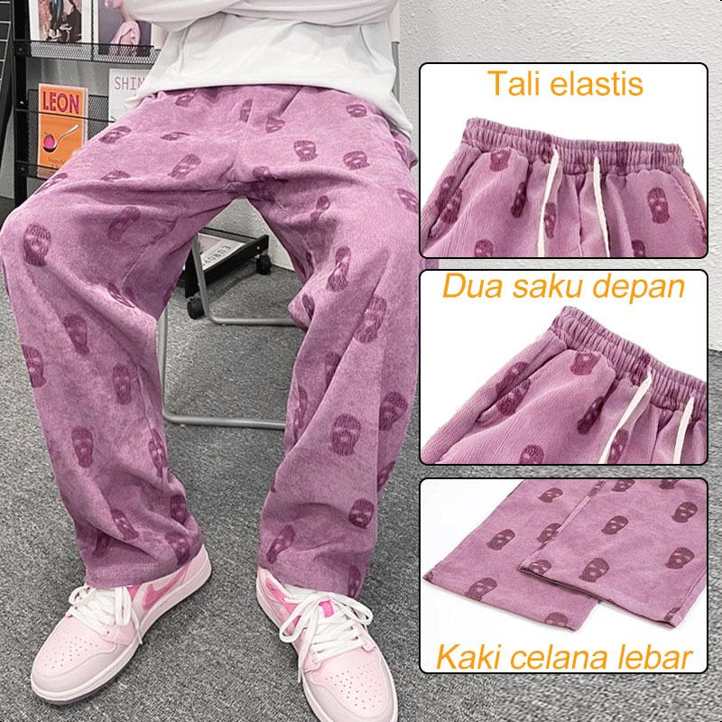 (Desain kepala tengkorak)Celana y2k/Celana kasual/Celana skena cowok/Celana panjang pria/Celana corduroy panjang pria/Hitam/Merah muda/Abu-abu/ Biru/4 warna/Straight