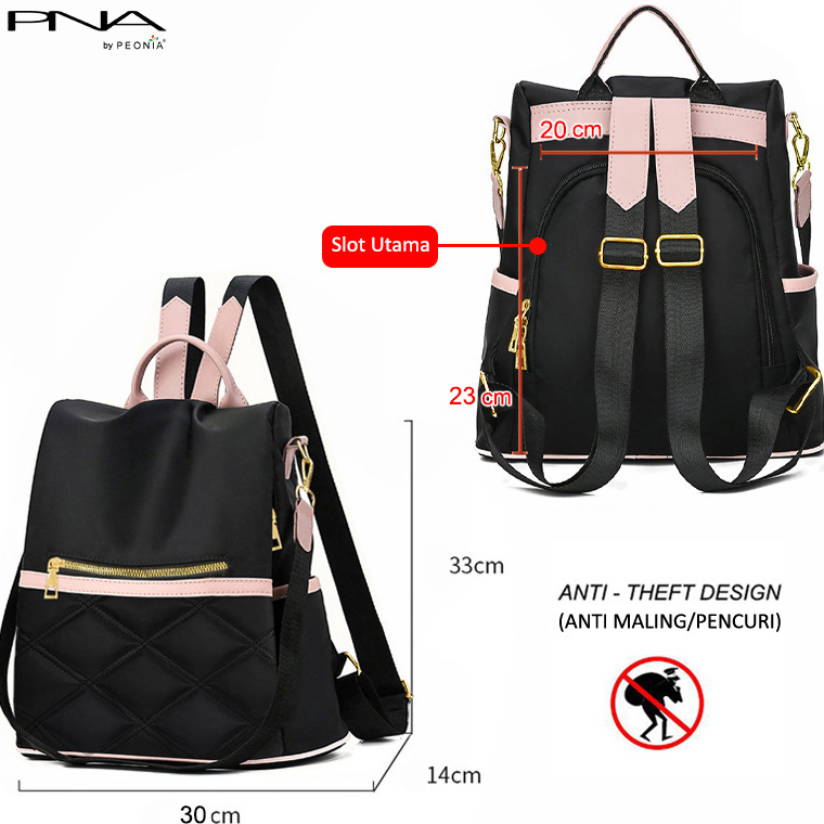 Tas Ransel Peonia Pna Carla Water Resistant Tas Ransel Wanita Import Korea Style Punggung Kantor Kerja Sekolah Kuliah