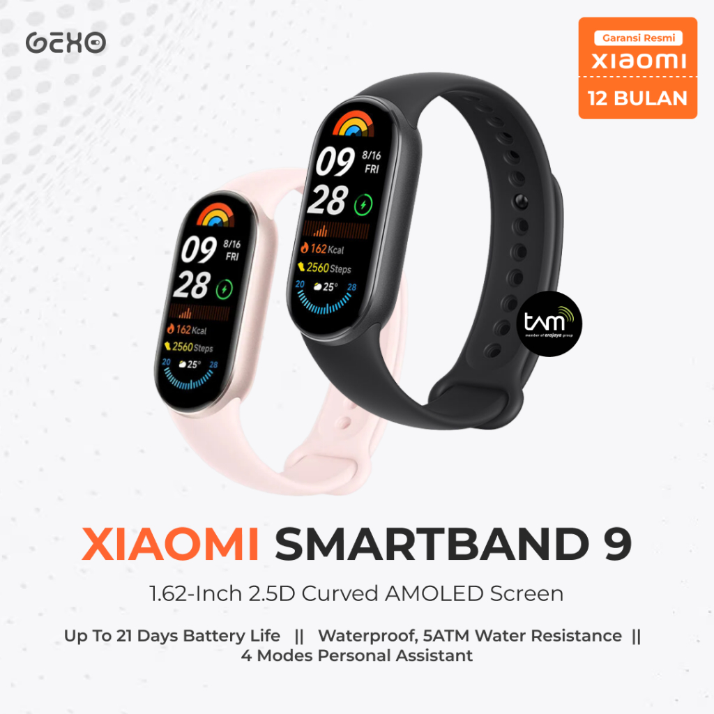 Xiaomi Smart Band 9 | 150+ Mode Olahraga | Masa Pakai Baterai hingga 21 Hari | Layar Amoled 1,62" | Gelang pintar | [Garansi Resmi