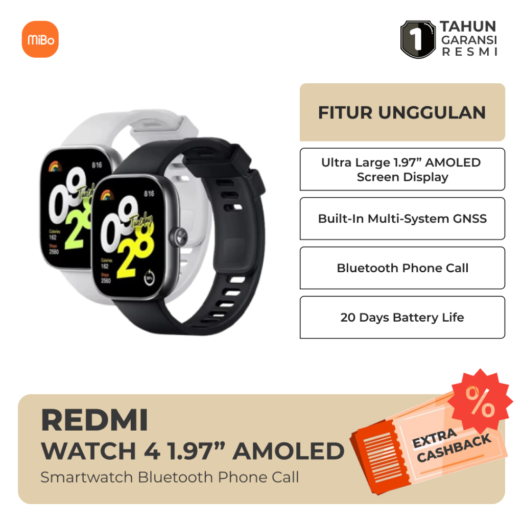 Xiaomi Redmi Watch 4 1.97 inch AMOLED BT Call HyperOS 5ATM 200+ Sports Modes Smartwatch Garansi Resmi