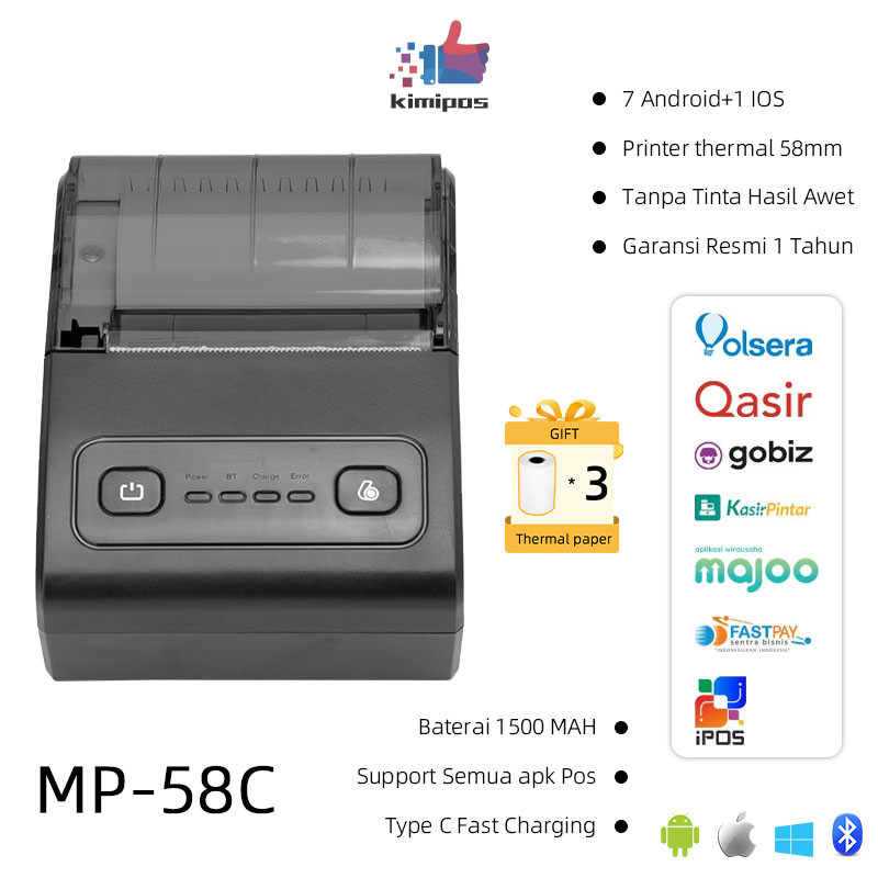 [Mall] PRINTER BLUETOOTH THERMAL MP-58C 58MM SUPPORT FAST CHARGE / CHARGING - TYPE C - POWERBANK - PUTIH
