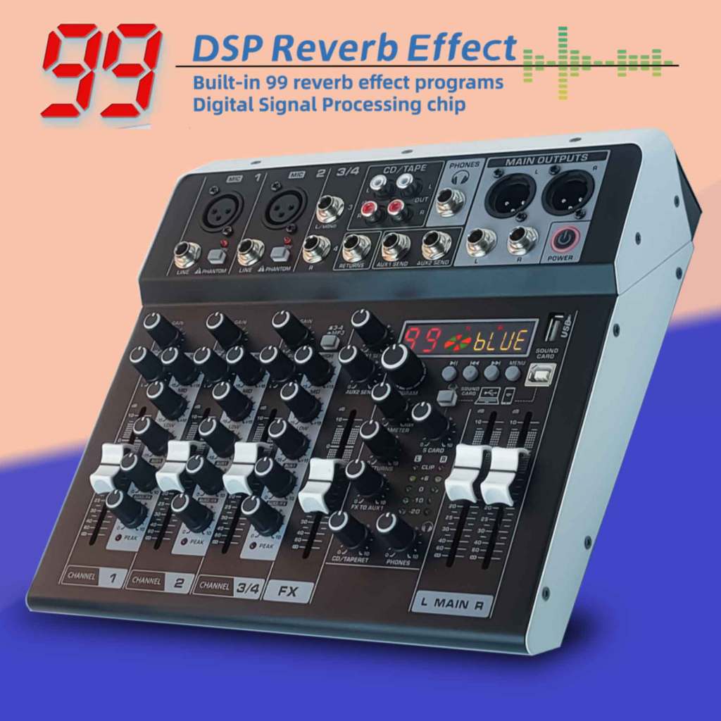 MIXER AUDIO CS4 mixer profesional 4 channel 99DSP EQ CS4/F7/CT6 bluetooth/MP3 Live rekaman/suara kartu