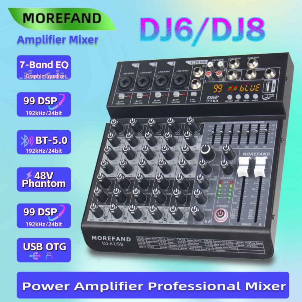 Mixer, DJ4/DJ6/DJ8 7 EQ mixer audio profesional, saluran 4, rekaman langsung komputer terhubung dengan bluetooth