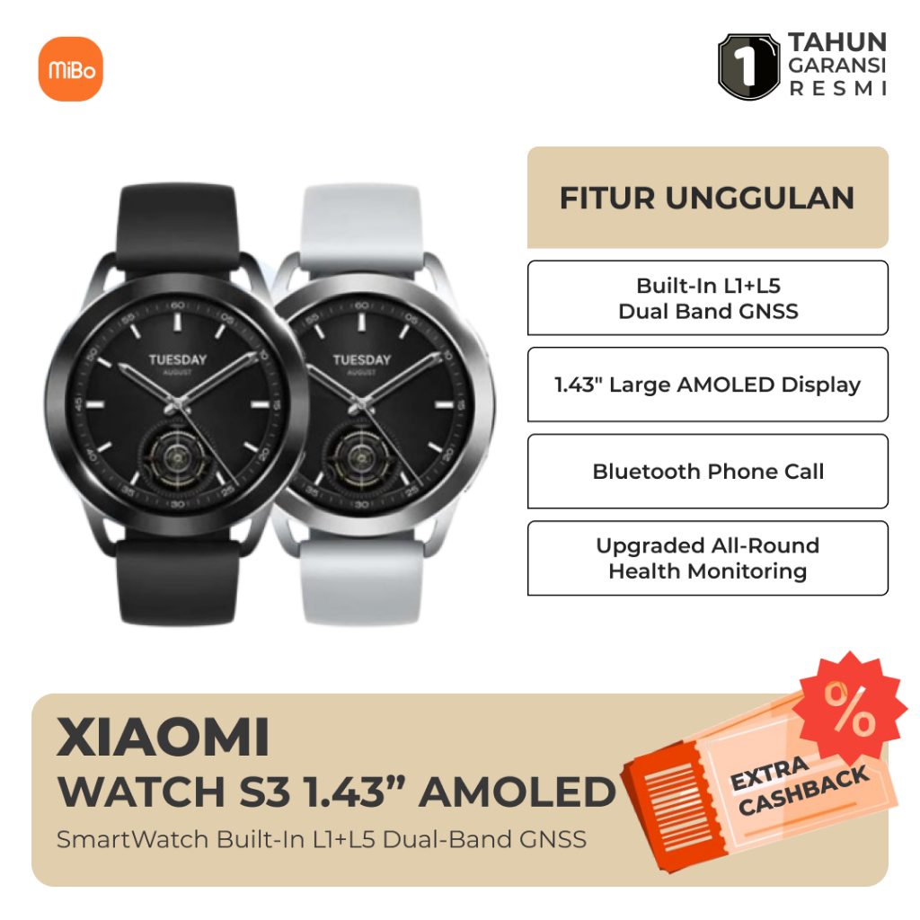Xiaomi Watch S3 1.43 Inch AMOLED 5ATM Bluetooth Phone Call 150+ Sports Modes Garansi Resmi