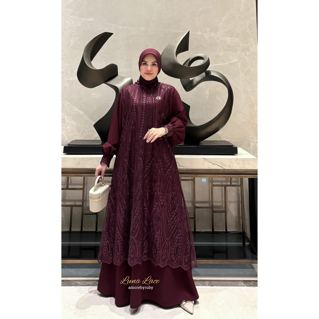 [Mall] LUNA LACE DRESS AMOREBYRUBY GAMIS TULLE MOTIF MIX CREPE BUSUI FRIENDLY LENGAN BALON ALL SIZE JUMBO MEWAH LEBARAN