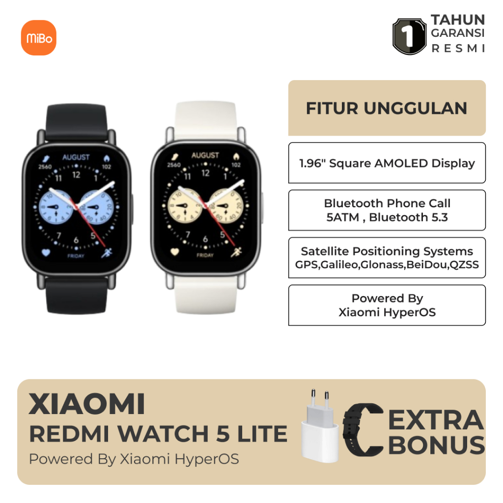 Redmi Watch 5 Lite 1.96" AMOLED 5ATM Built-in GNSS AOD BT Call Garansi Resmi