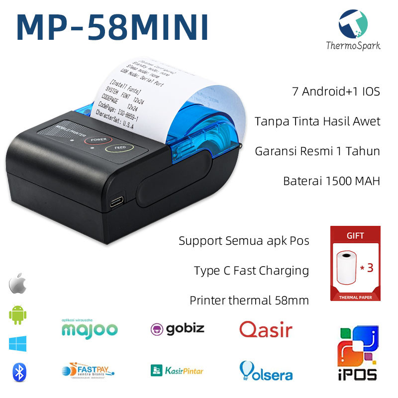 [Mall] PRINTIR PENERIMAAN PENJUALAN HANDHELD MOBILE PORTABLE THERMAL - ANDROID IOS WINDOWS BLUETOOTH 58MM PRINTER GRATIS KERTAS 3 ROLLER & BATERAI