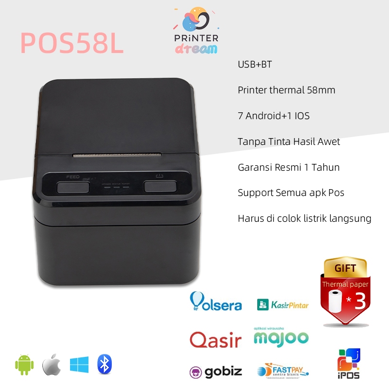 [Mall] FREE3 ROLL KERTAS PRINTER THERMAL 58MM POS58L USB BLUETOOTH USB BT | CETAK RESI | CETAK STRUK | USB DAN BLUETOOTH | THERMAL PRINTER