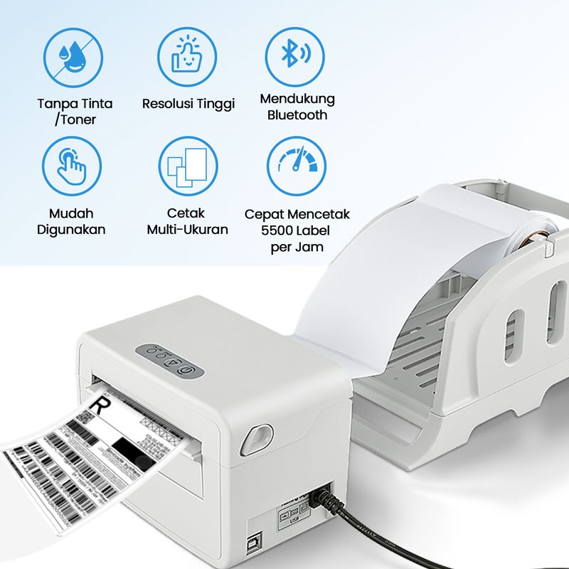 [Mall] PRINTER THERMAL CETAK RESI LABEL CEPAT JELAS USB+BLUTOOTH MUDAH DIAKAN