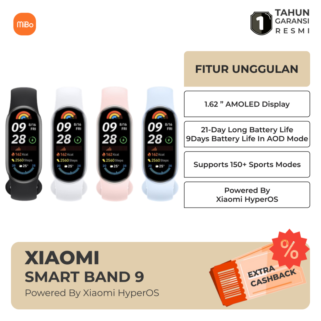 Xiaomi Mi Smart Band 9 1.62" AMOLED HyperOS Always On DIsplay Garansi Resmi