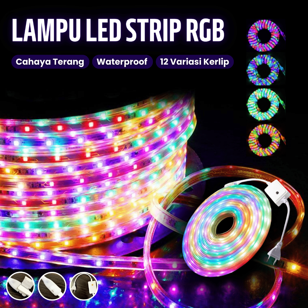 LAMPU LED STRIP SELANG WARNA WARNI Full 8 mETER 3528 2835 220V + ADAPTOR OUTDOOR LED STRIP RGB LAMPU HIAS