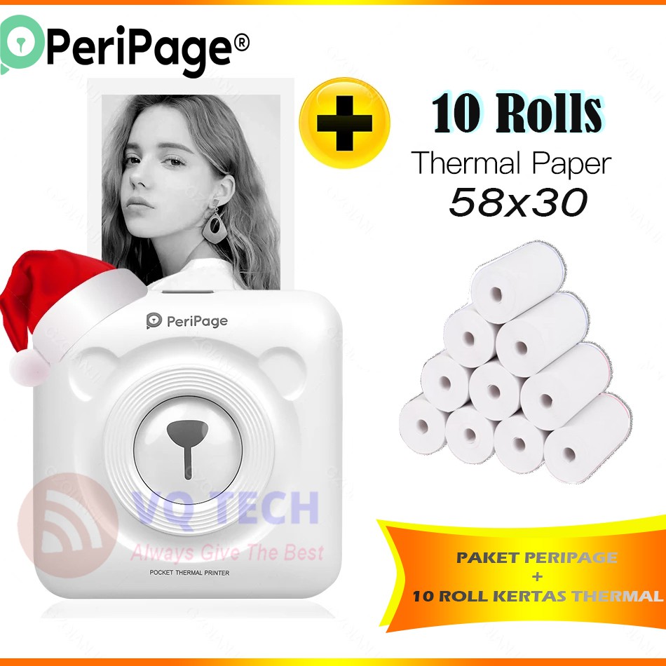 [Mall] PERIPAGE A6 PRINTER MINI THERMAL BLUETOOTH + KERTAS THERMAL 10 ROLL GARANSI RESMI