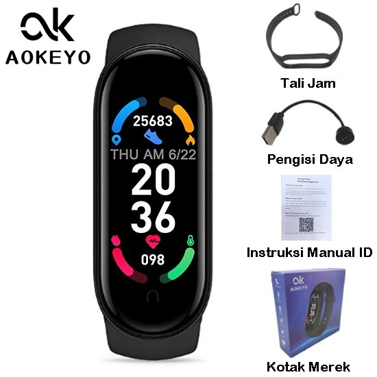 Aokeyo M6 Smartwatch Bluetooth Smartband Fitness Tracker Colour Display HeartRate Waterproof Jam Tangan Pria Wanita Digital