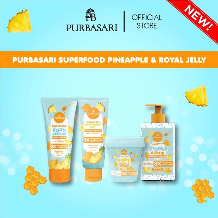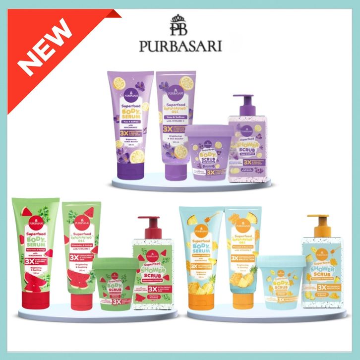 BUNDLING NEW SERIES ISI 4 Purbasari Superfood Series Set - Body Serum + Shower Scrub + Body Scrub +