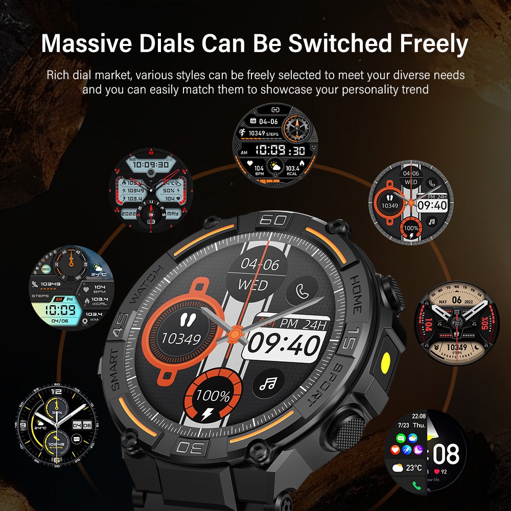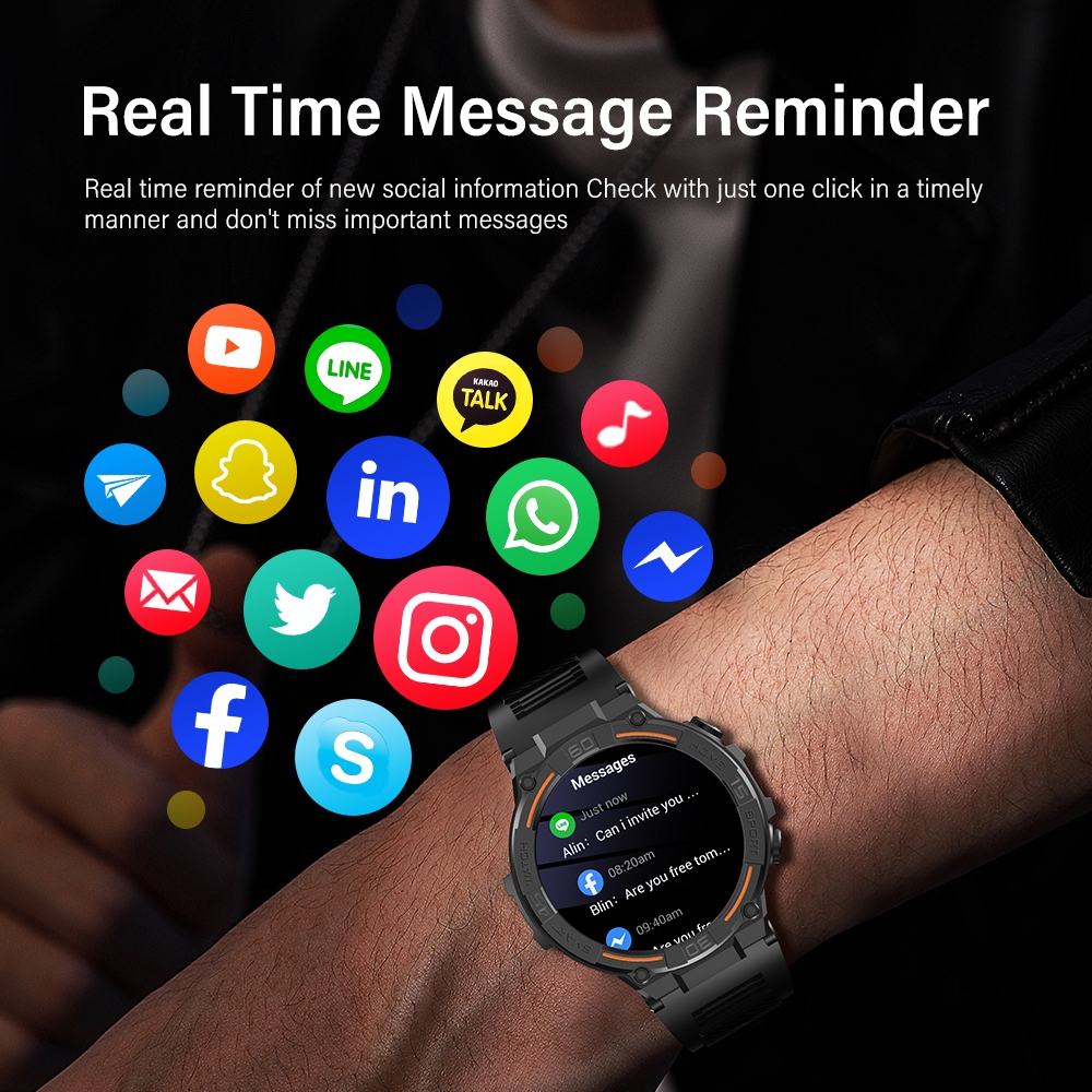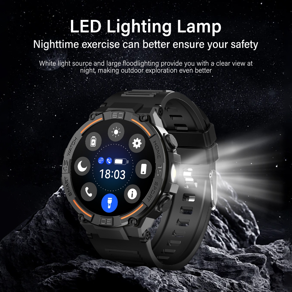 RAYVASI GT Pro SmartWatch Pria LED Flashlight Jam Running Pria Bluetooth Call 100+ Sport Mode Heart Rate Jam Pintar