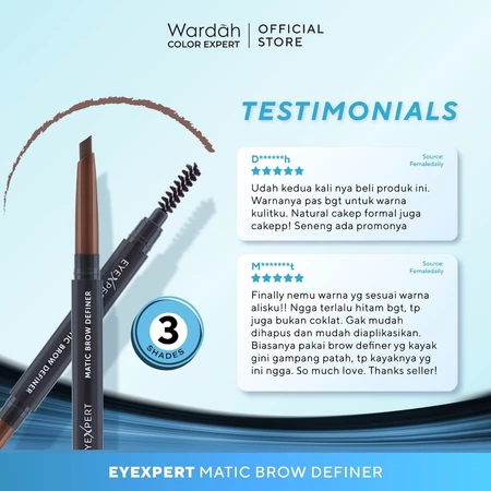[Mall] Wardah Official Store WARDAH Pensil Alis Anti Air dan Tahan Lama Hingga 8 Jam - Mudah Digunakan Teksur Powdery
