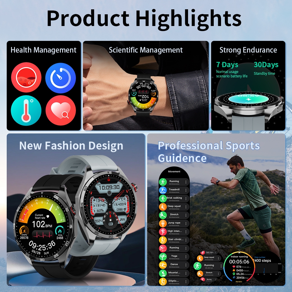 Simbojoy Smartwatch AMOLED AOD Metal Case Running Pace Waterproof 100+ Sport Modes 24H Health Monitoring Bluetooth Call Smart Watch 200+ Watch Face Smart Watch
