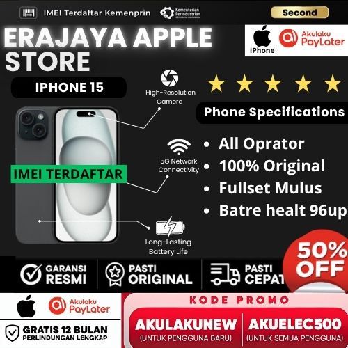 [Star] HP APPLE IPHONE 15 128GB/256GB/512GB SECOND LIKE NEW MULUS TERBARU ORIORIGINAL 100% MULUS NORMAL FULLSET IBOX