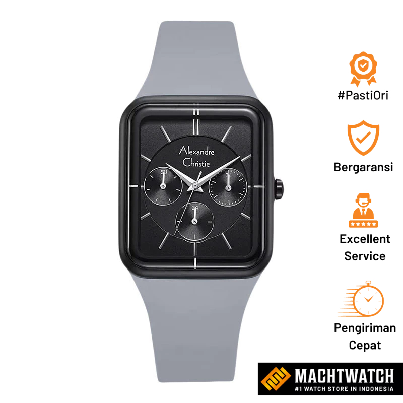 Jam Tangan Wanita Alexandre Christie Passion AC 2744 BF RIPBAGR Ladies Black Dial Grey Rubber Strap