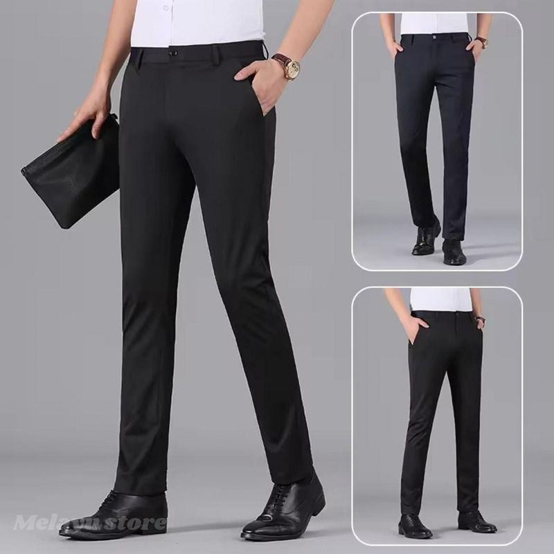 CELANA BAHAN KERJA FORMAL KANTOR PANJANG HITAM DASAR PRIA SLIMFIT
