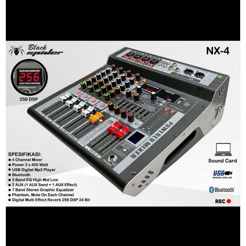 Power Mixer Black Spider NX4 4CH BLACKSPIDER Garansi Original