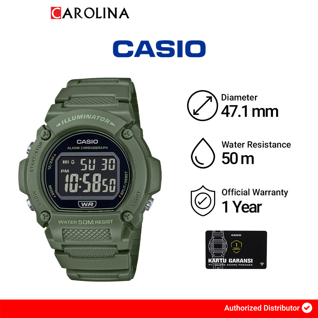 Jam Tangan Pria CASIO Standard Series W-219HC-3B Digital Dial Army Green Resin Band