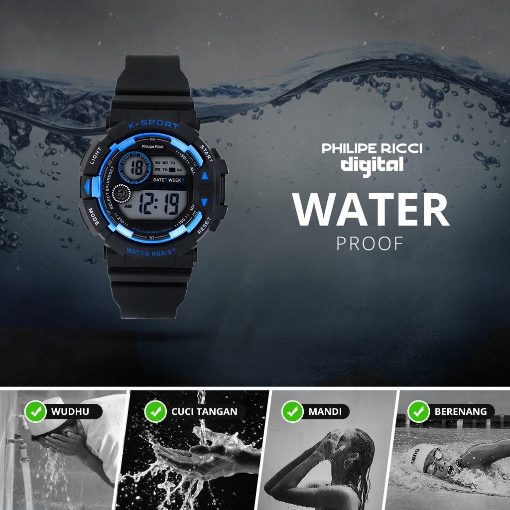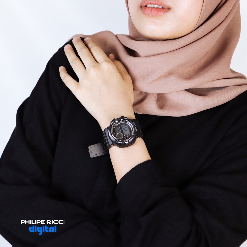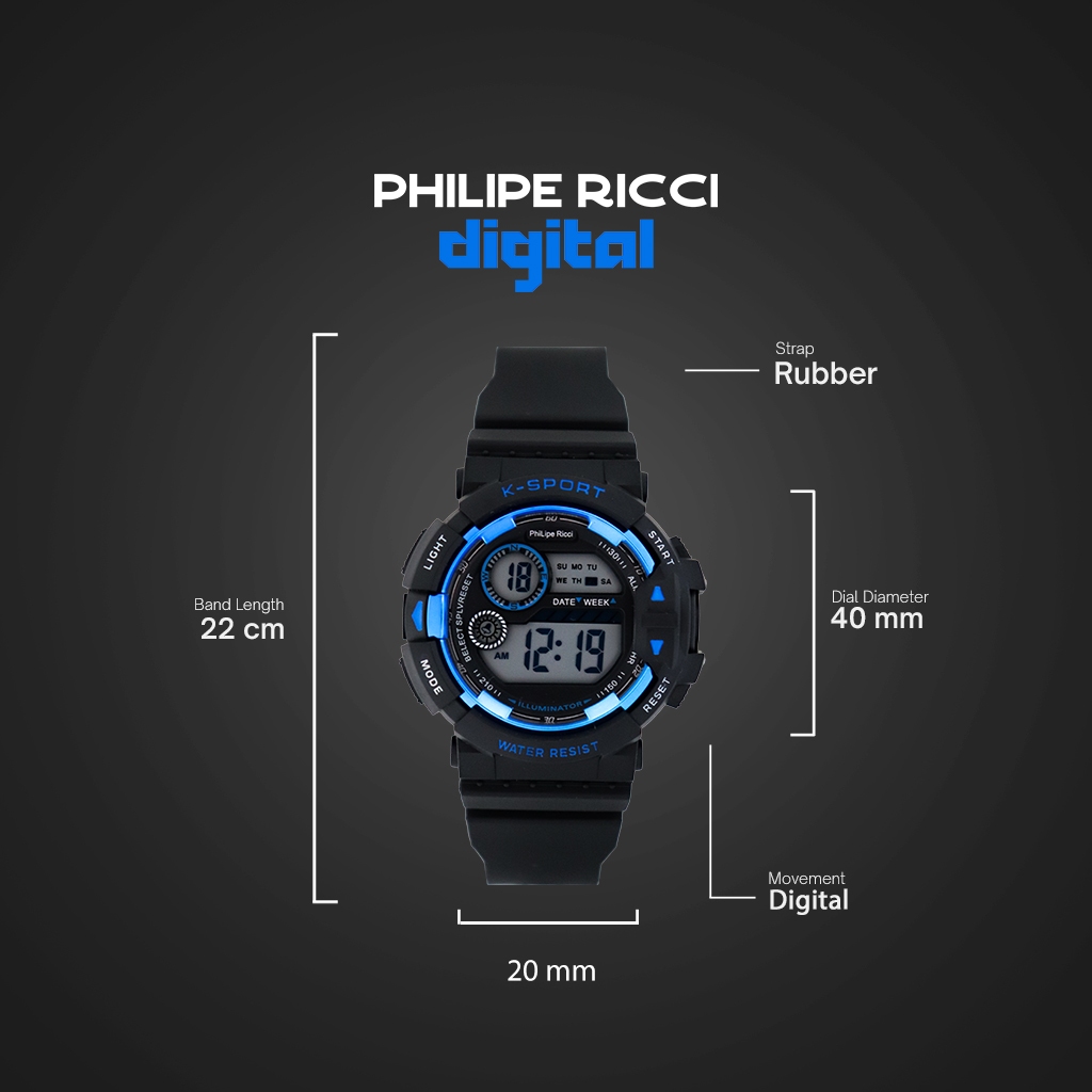 PhiLipe Ricci Digital Jam Tangan Pria Wanita Anti Air Unisex Diameter Bulat Modern Strap Rubber Desain Simpel Kekinian F138 Water Resist Watches Free Box