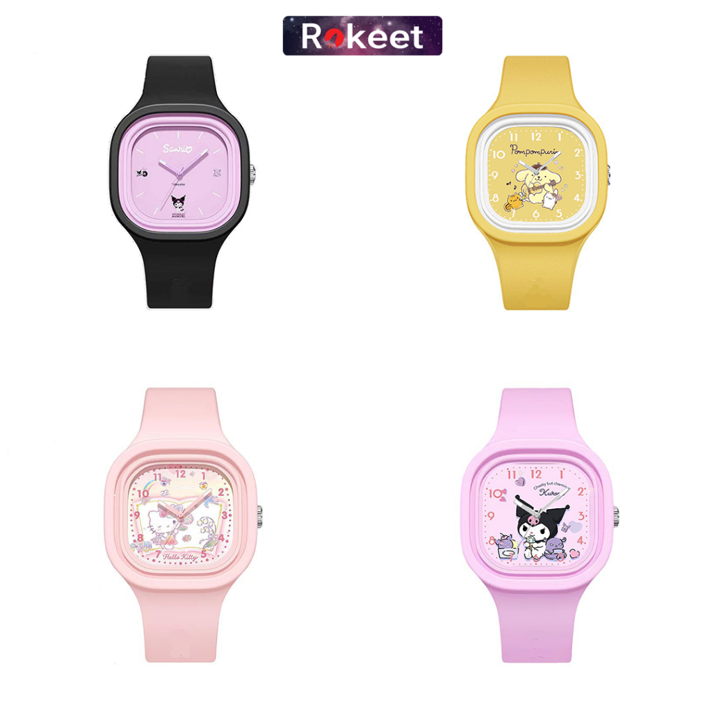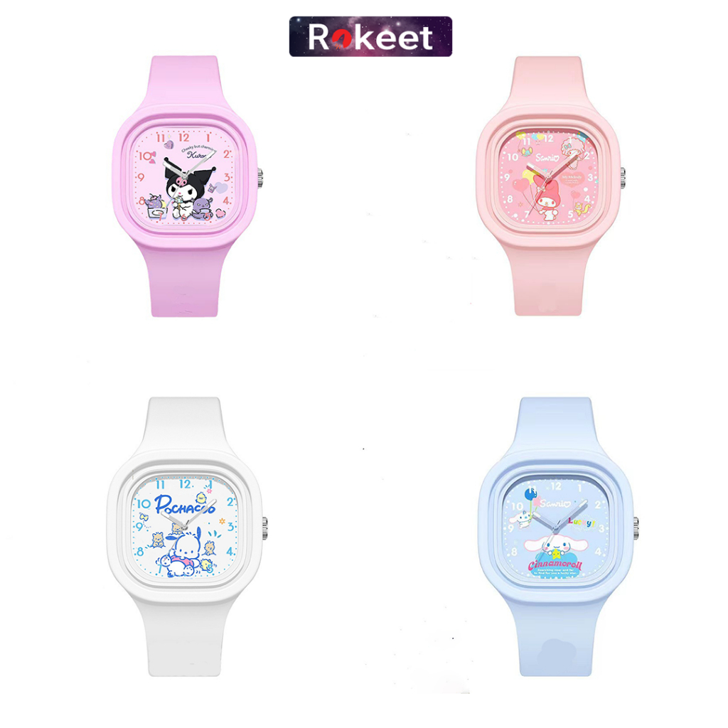 Rokeet Jam Tangan Rubber Analog Karakter Lucu Kuromi Cinnamoroll Sanrio Wanita Anak Perempuan