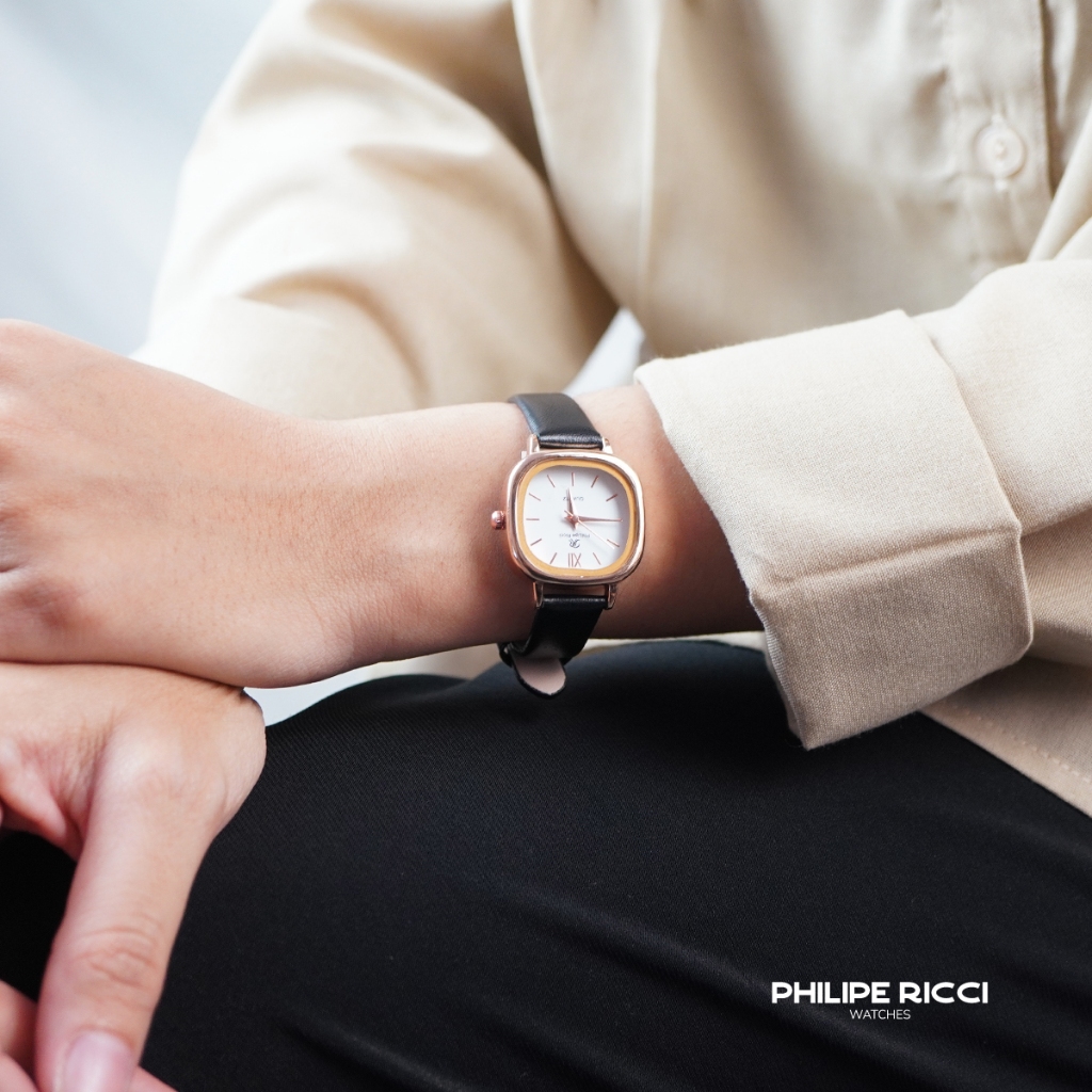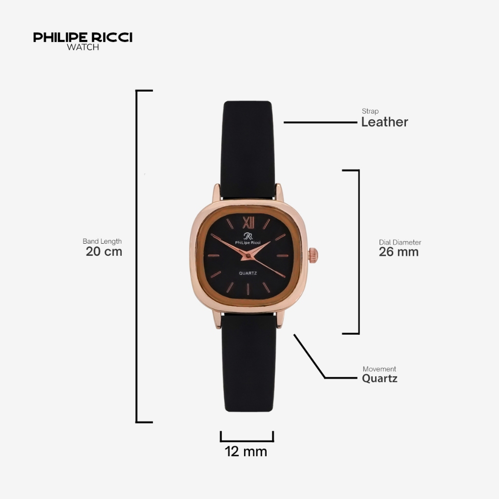 PhiLipe Ricci Jam Tangan Wanita Kulit Korea Kotak Kecil Simple Hitam 7474 Women Watches Original