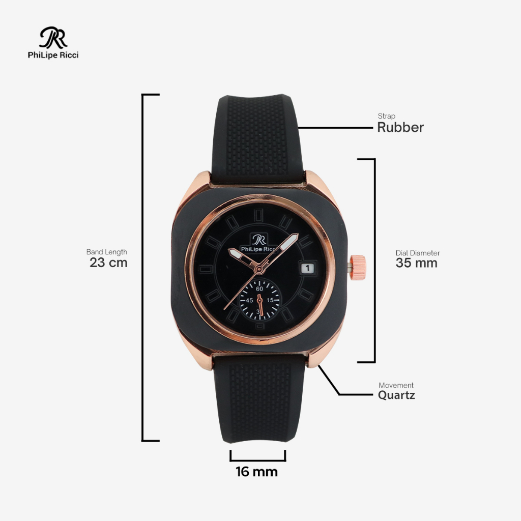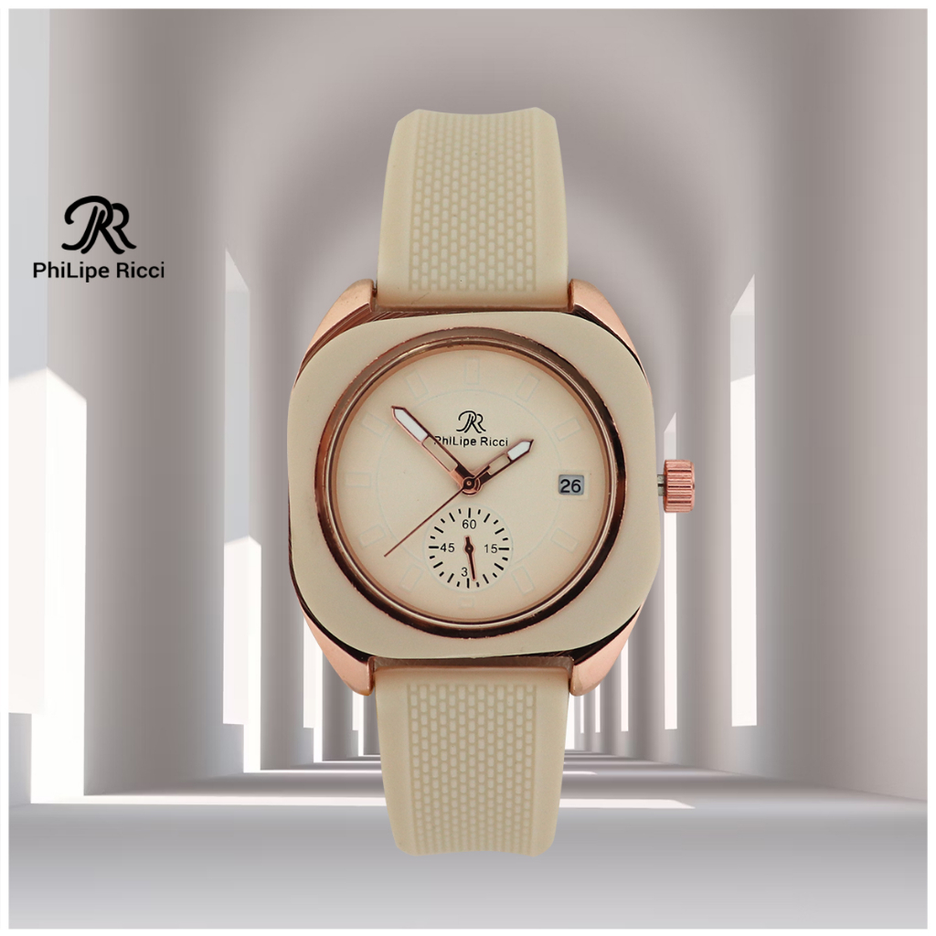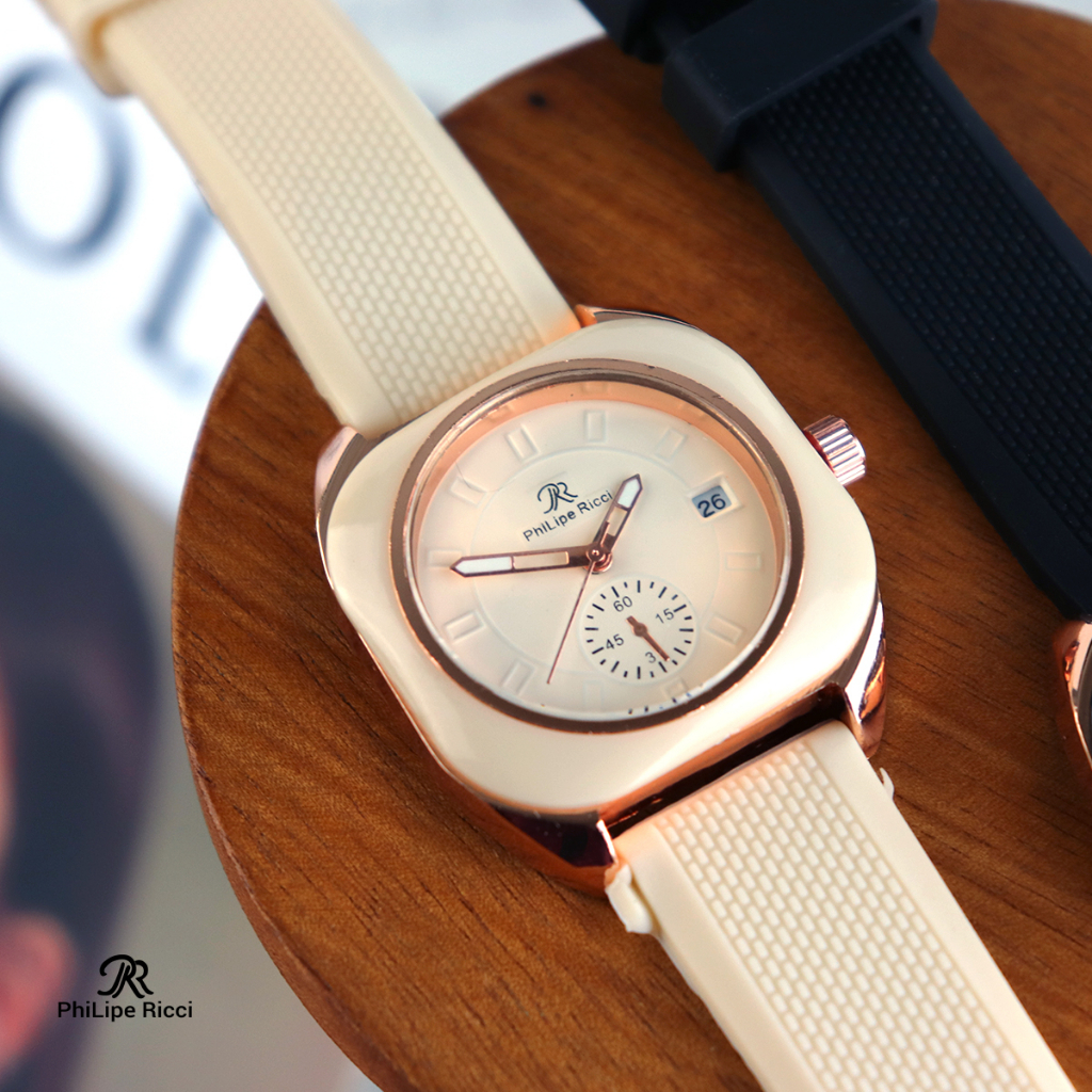PhiLipe Ricci Jam Tangan Wanita Analog Tanggal Aktif Diameter Kotak Strap Tali Karet Kecil Korea Style 8899 Free Box