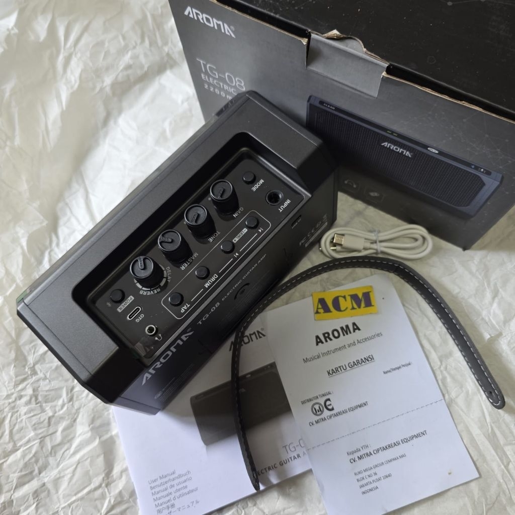 Amplifier Gitar Elektrik 10 Watt AROMA Wireless Rechargeable Battery Baterai Cas TG-08