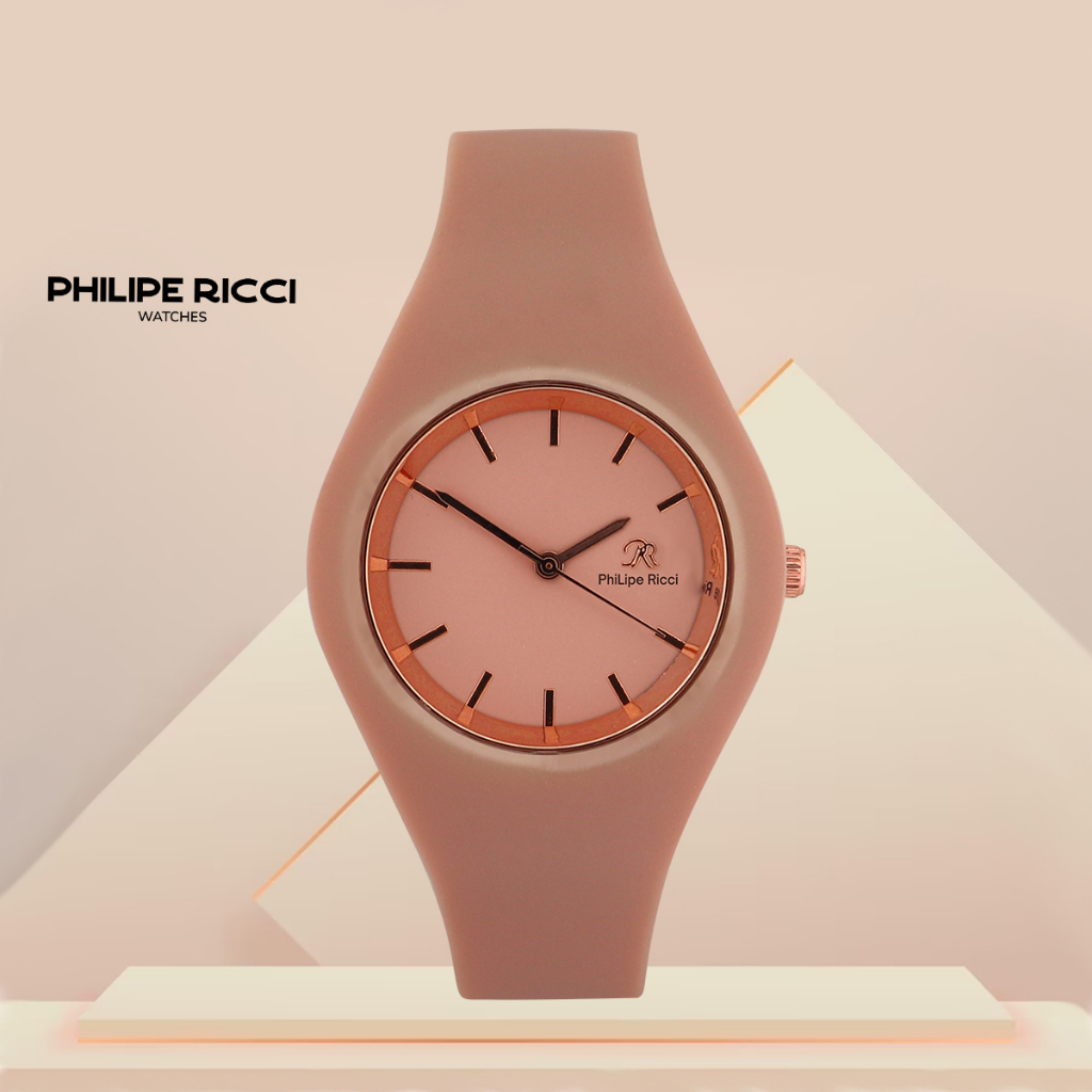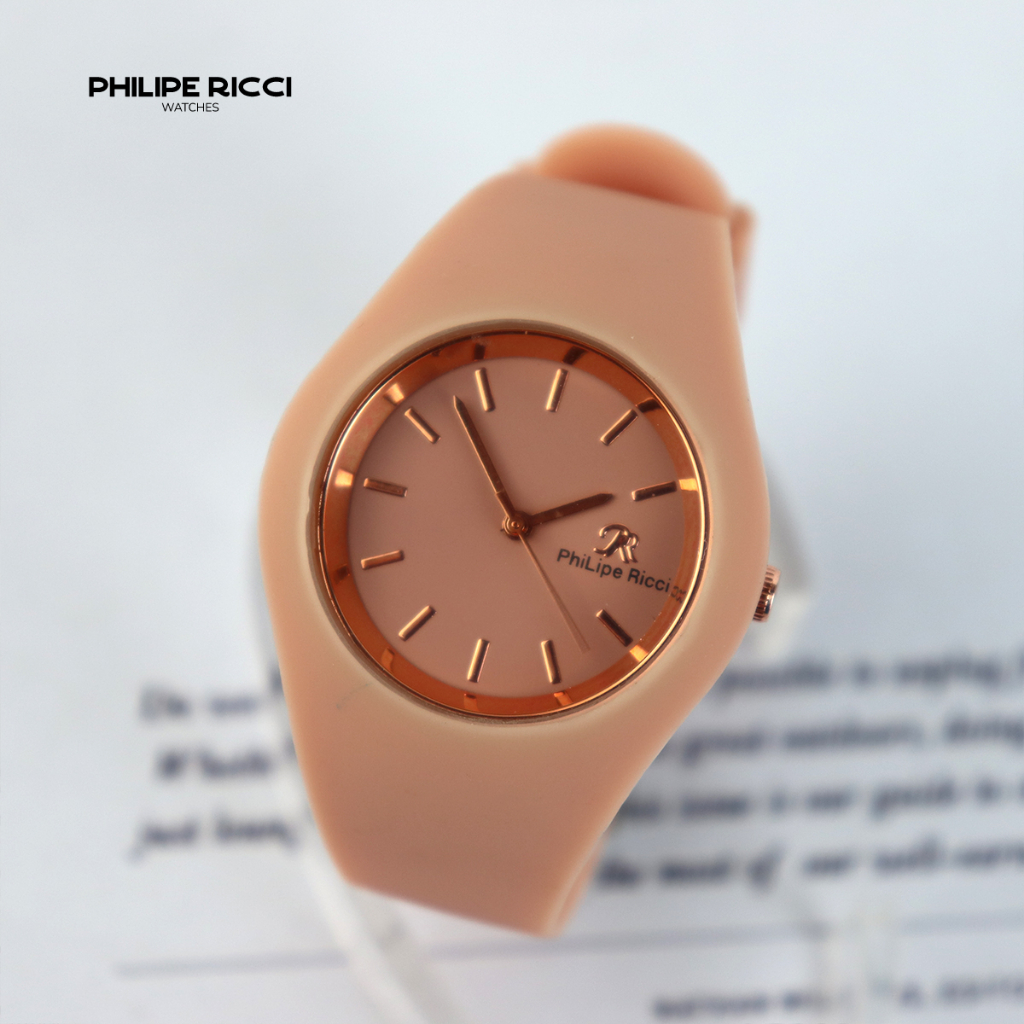 PhiLipe Ricci Jam Tangan Wanita Kecil Original Cewek Analog Strap Karet Tali Rubber Diameter Bulat Model Simpel Kekinian 9063 Woman Watches Modern Free Box