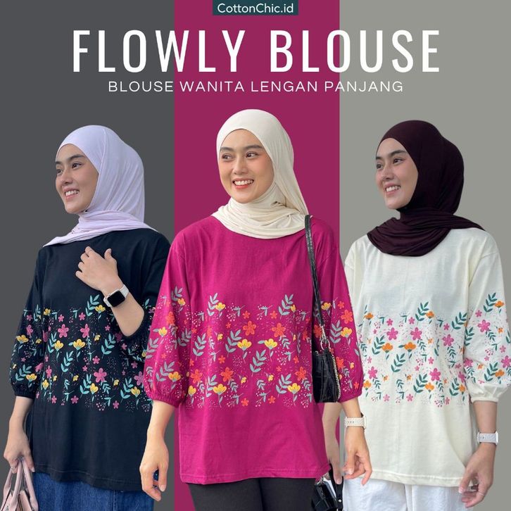 FLOWLY LONG SHIRT ATASAN WANITA BUNGA FLOWER KAOS KATUN COTTON SOFT BLOUSE WANITA TERBARU ATASAN WANITA KOREA STYLE