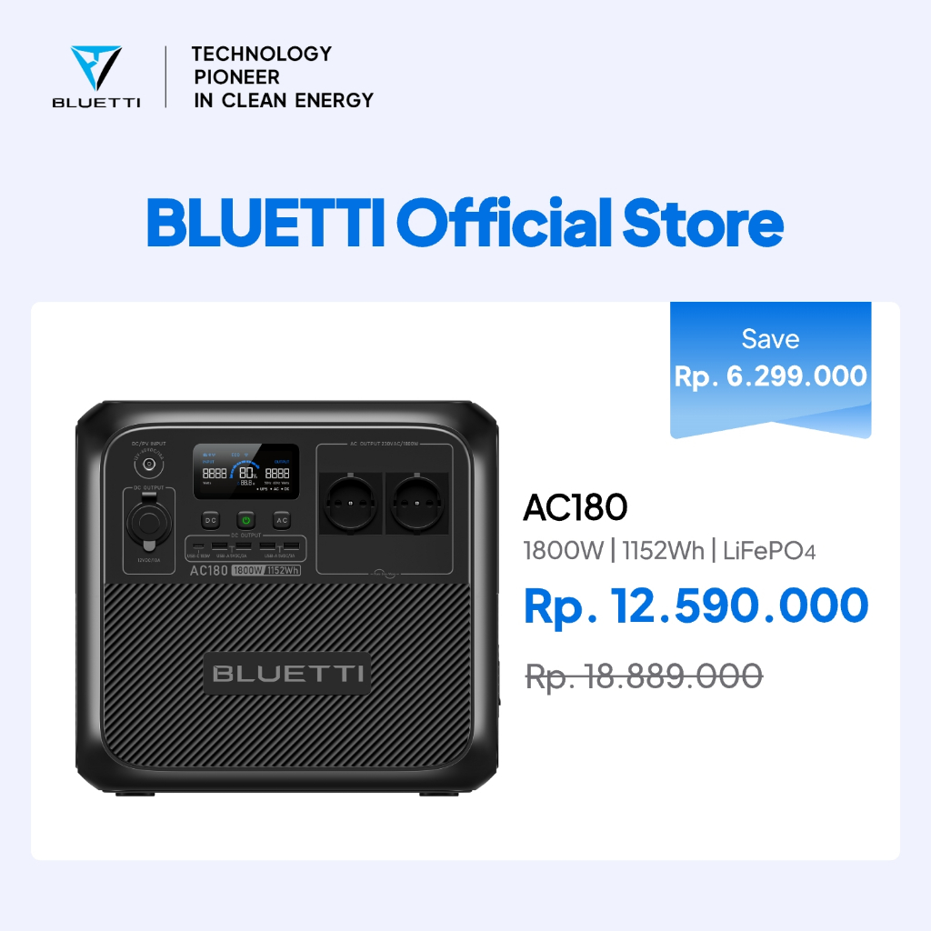 BLUETTI AC180 Portable Power Station | 1800W 1152Wh