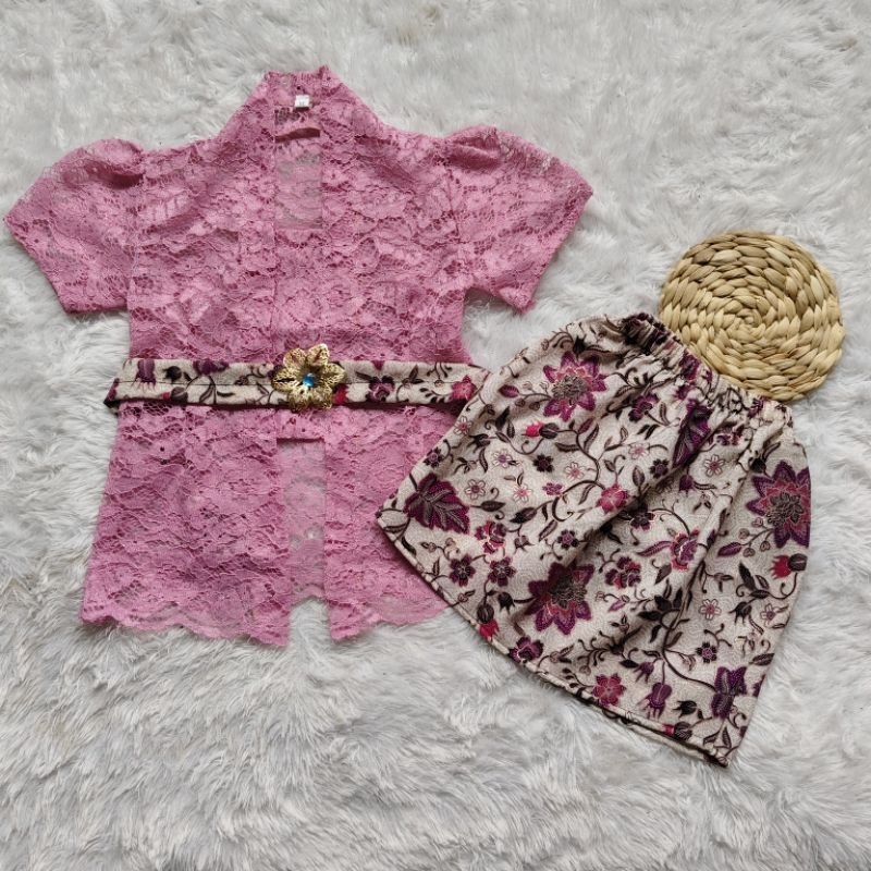 Baju Kebaya Anak Kutu Baru Bali Usia 1 sampai 6 Tahun Lengan Pendek Rok Pendek