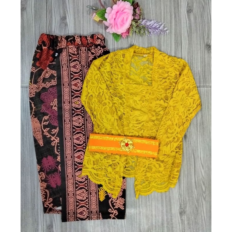 Setelan Kebaya Anak Bali Lengan Panjang/Oneset Kebaya Anak Usia 5 - 10 Tahun