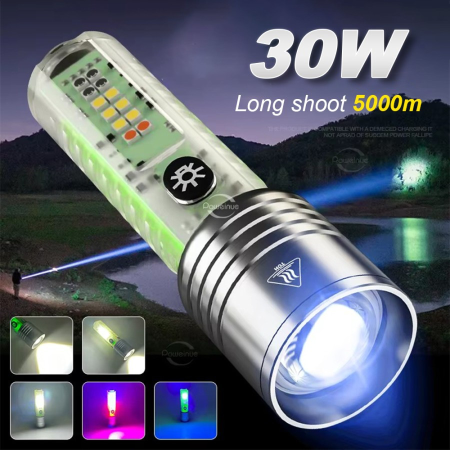 Senter Transparan 520A 8 Mode Warna Zoom In Out Cas 30W Magnet