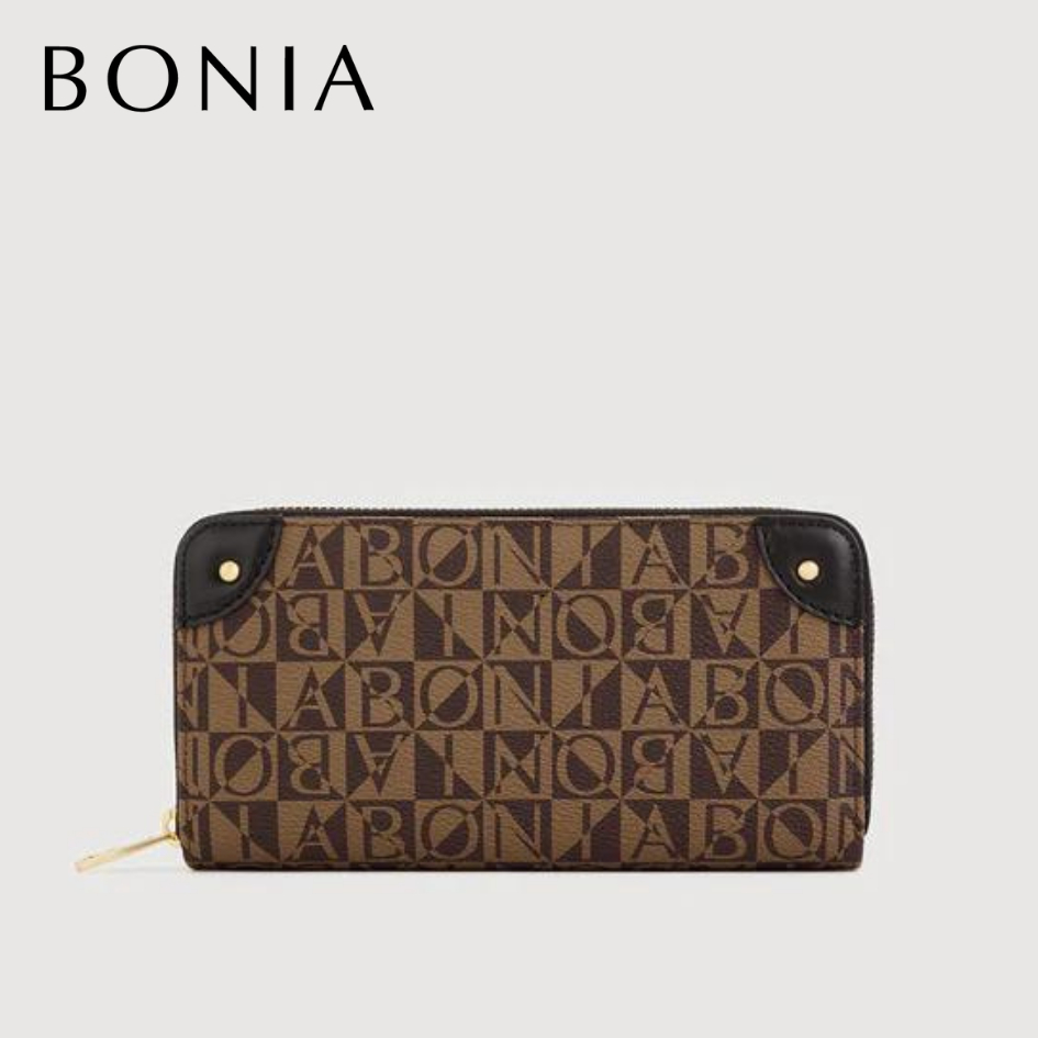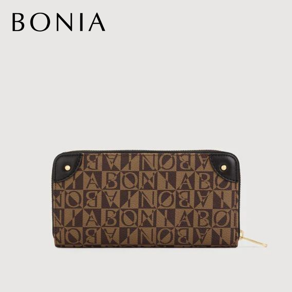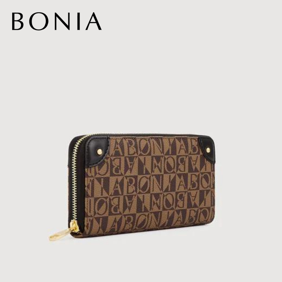 DOMPET WANITA BONIA LITA MONOGRAM LONG ZIPPER WALLET BLACK PANJANG BRANDED ORIGINAL MURAH MERIAH