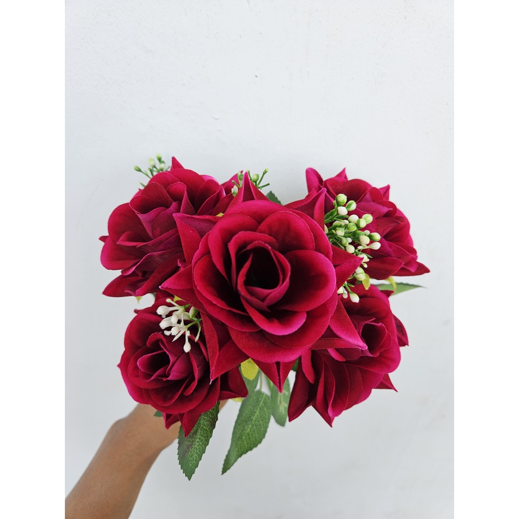Bunga Mawar Hias Beludru K5 Bunga Plastik Hias Dekorasi Pernikahan