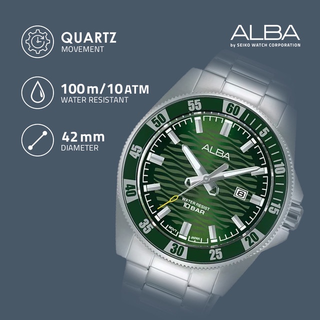 ALBA Jam Tangan Pria AG8L87 Quartz Stainless Steel s1lv3r Watch