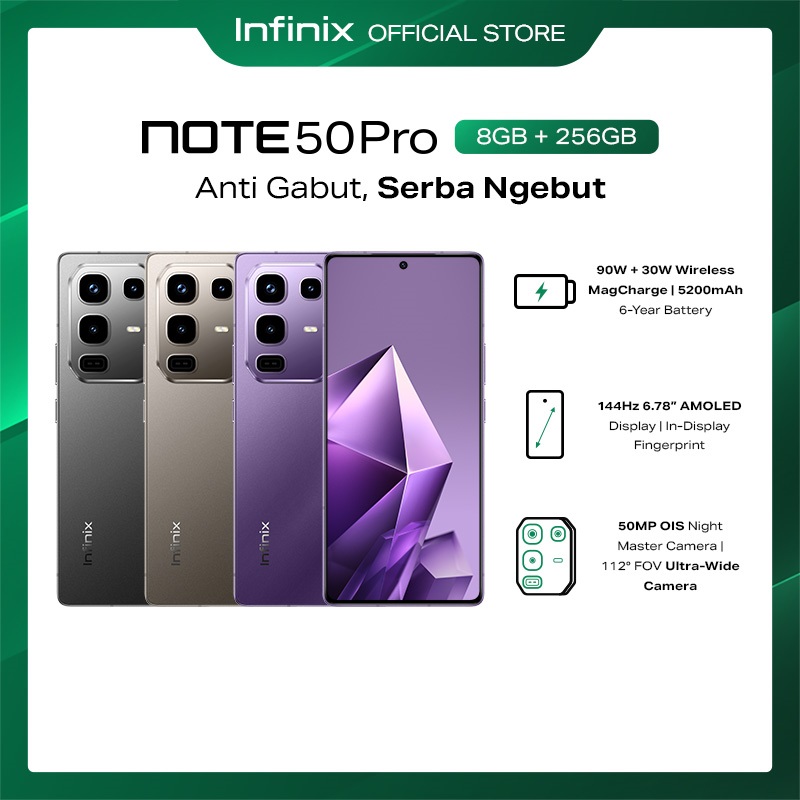Infinix Note 50 Pro 8/256GB - Up to 16GB Extended RAM - Helio G100 Ultimate - 6.78” FHD+ Amoled - 50MP OIS - 5200 mAh -