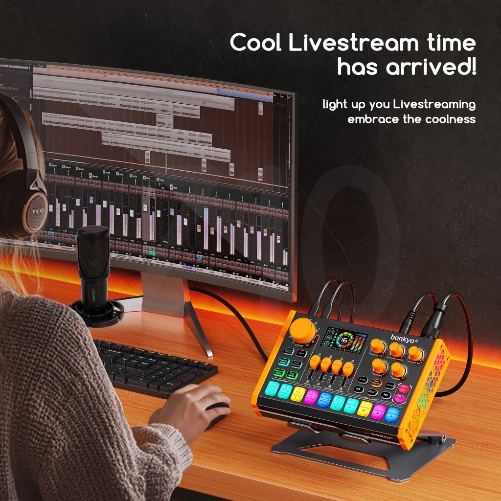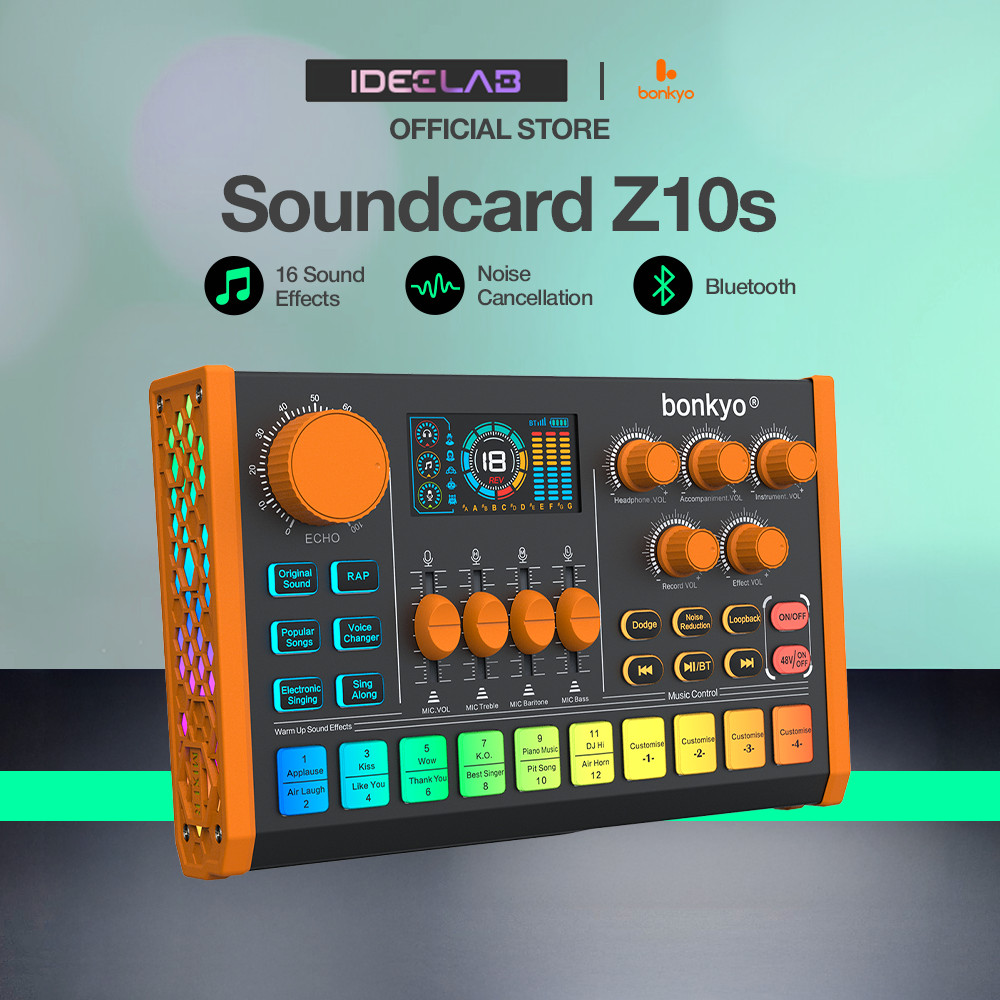 IDEELAB&Bonkyo Z10S Sound Card Bluetooth Live Z10S 48V Kartu SuaraTekstur Logam dan Pencahayaan RGB Mixer Audio Live untuk Karaoke Live