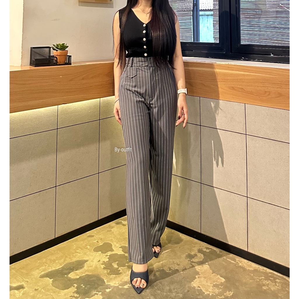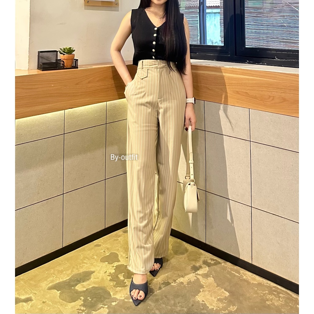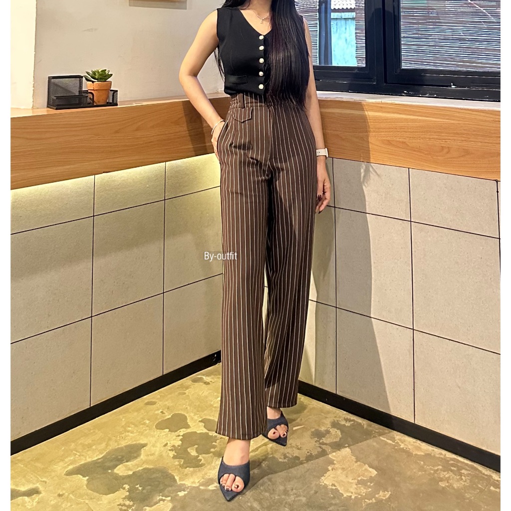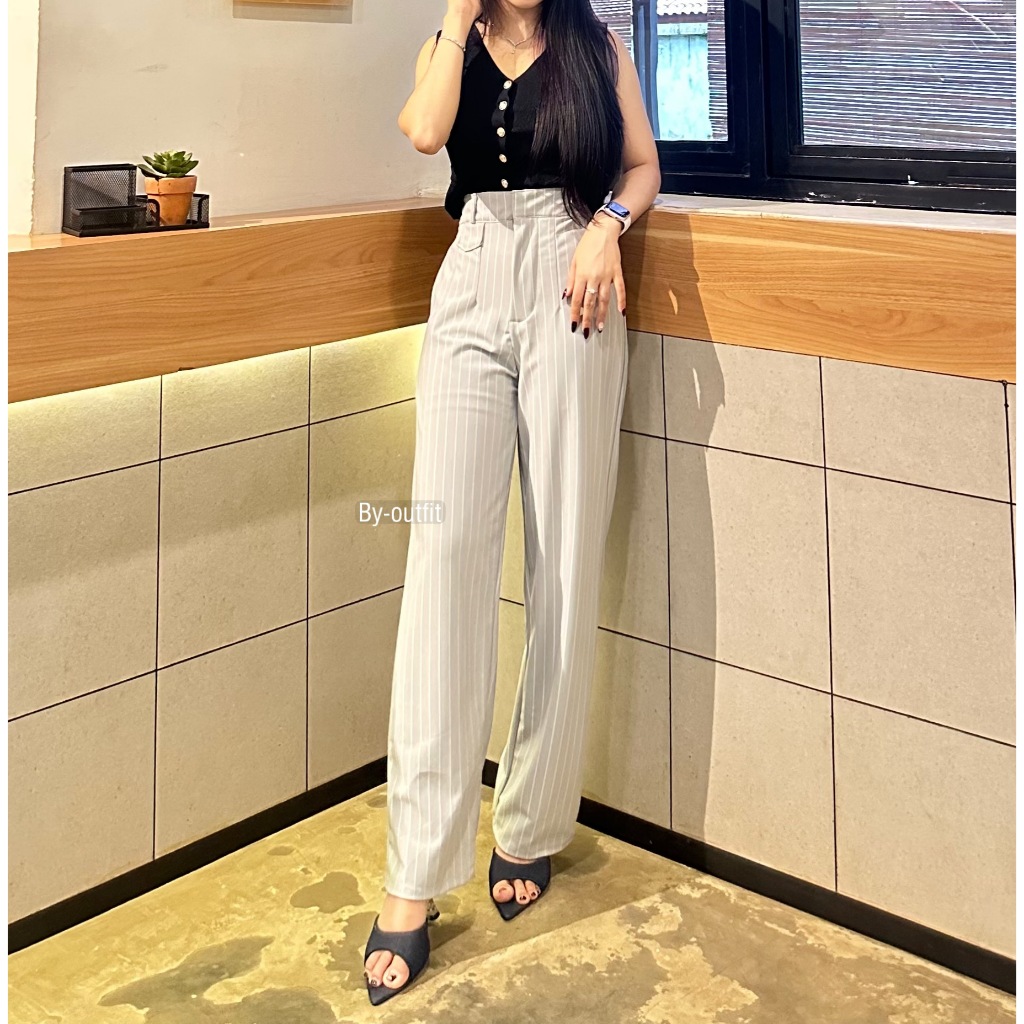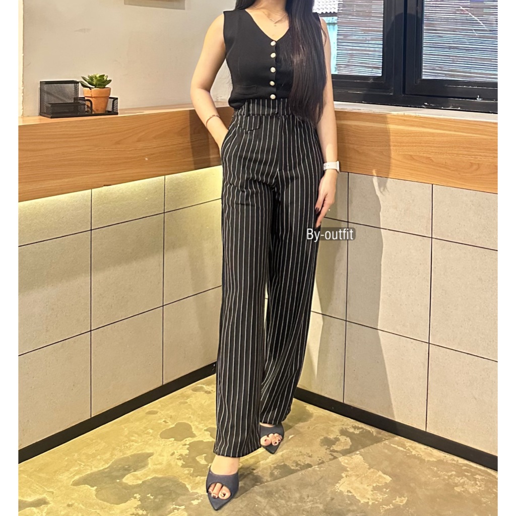 By Outfit - Oro Pants Stripe - Loose Pants Stripe Bangkok Celana Anti Kusut Celana Panjang Korean Style Kulot Wanita Stripe