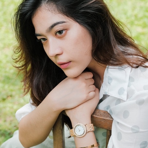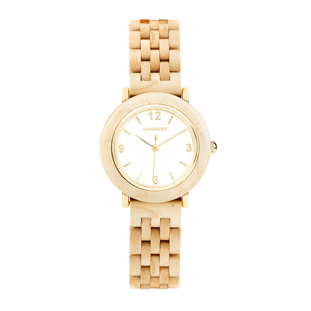 GARVINOES Viena Pear Flower White Jam Tangan Kayu Wanita 34 mm