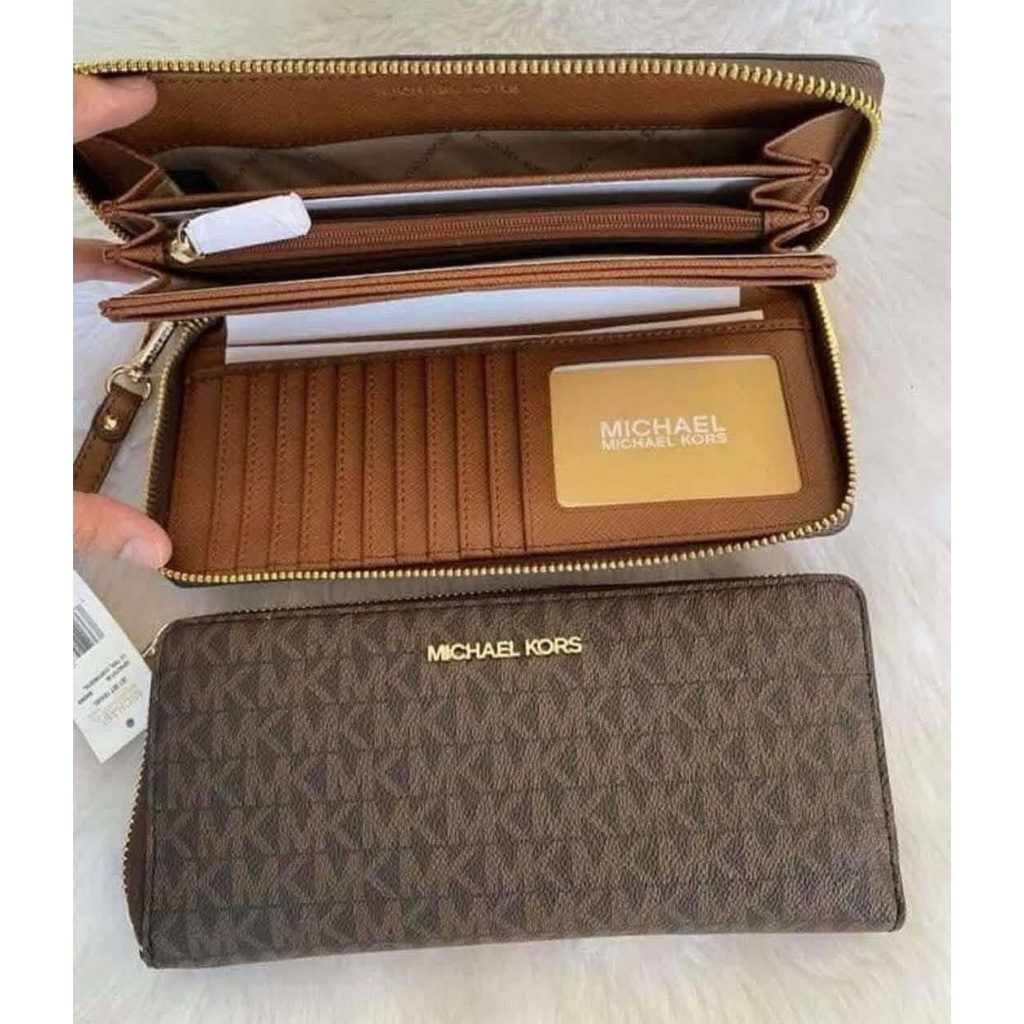 DOMPET WANITA BRANDED JET SET LARGE TRAVEL CONTINENTAL WALLET BROWN SIGN 21 X 10 CM AUTHENTIC ORIGINAL