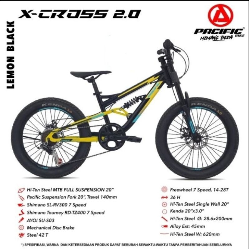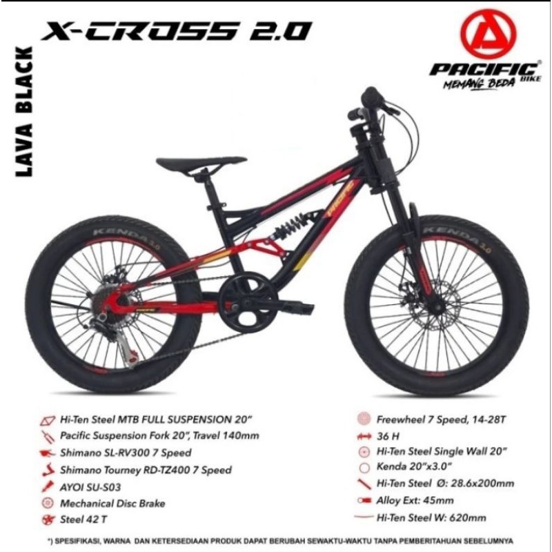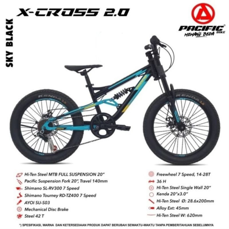 Sepeda MTB 20 Inc Pacific XCROSS 2.0 Fullsus 7 Speed Sepeda Gunung Anak